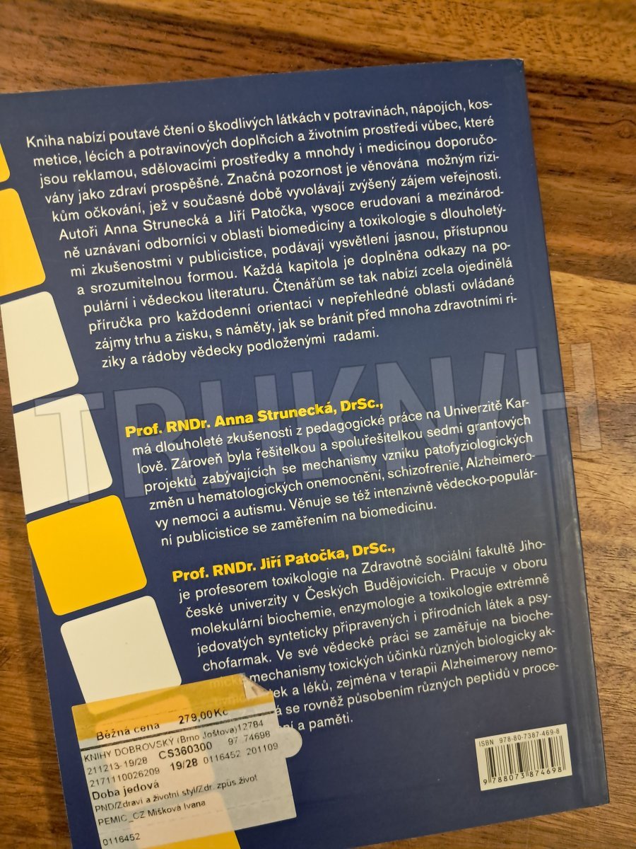 Kniha nabízí poutavé čtení o škodlivých látkách v potravinách, nápojích, kosmetice, lécích a potravinových doplňcích a životním prostředí vůbec, které jsou reklamou, sdělovacími prostředky a mnohdy i medicínou doporučovány jako zdraví prospěšné. Značná pozornost je věnována možným rizikům očkování, jež v současné době vyvolávají zvýšený zájem veřejnosti. Autoři Anna Strunecká a Jiří Patočka, vysoce erudovaní a mezinárodně uznávaní odborníci v oblasti biomedicíny a toxikologie s dlouholetými zkušenostmi v publicistice, podávají vysvětlení jasnou, přístupnou a srozumitelnou formou. Každá kapitola je doplněna odkazy na populární i vědeckou literaturu. Čtenářům se tak nabízí zcela ojedinělá příručka pro každodenní orientaci v nepřehledné oblasti ovládané zájmy trhu a zisku, s náměty, jak se bránit před mnoha zdravotními riziky a rádoby vědecky podloženými radami.
