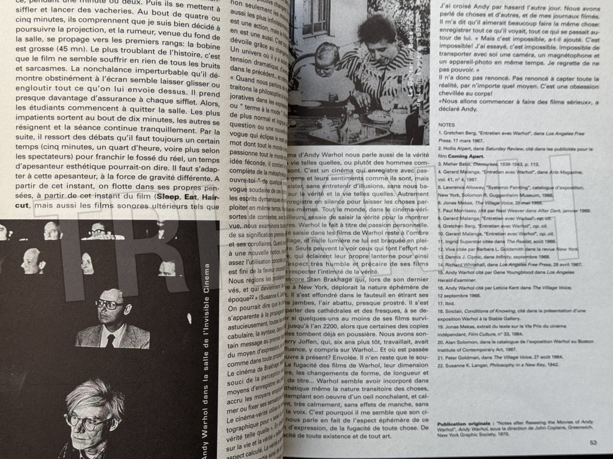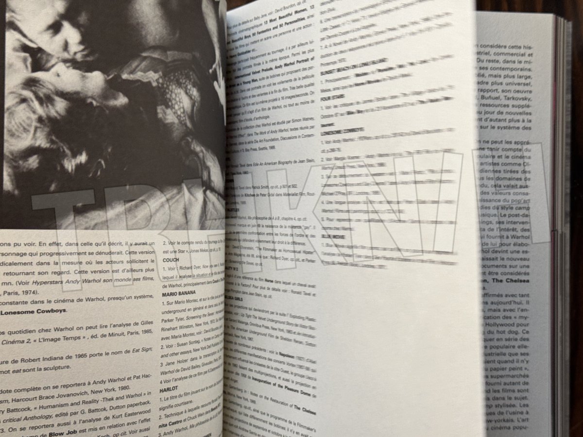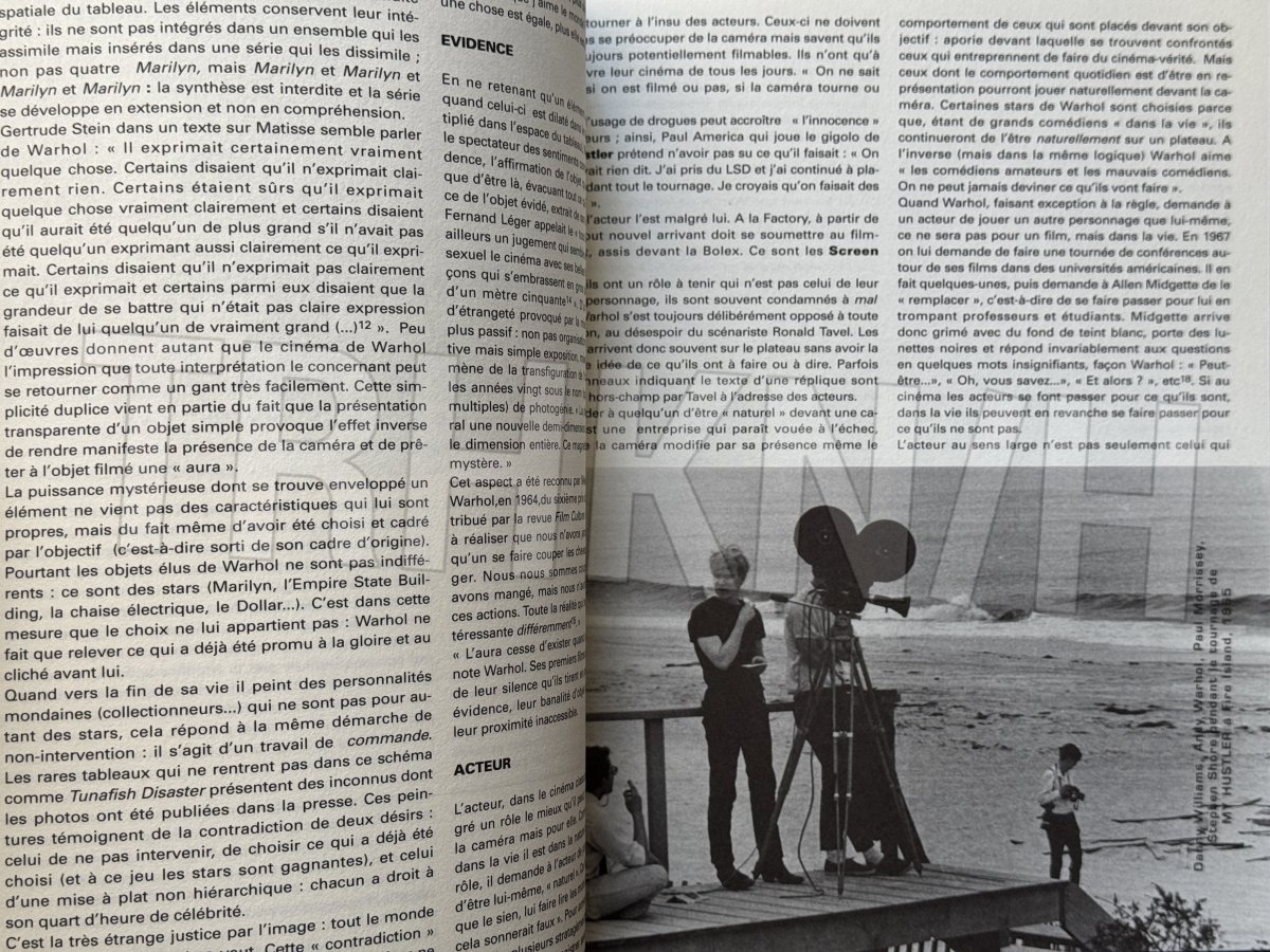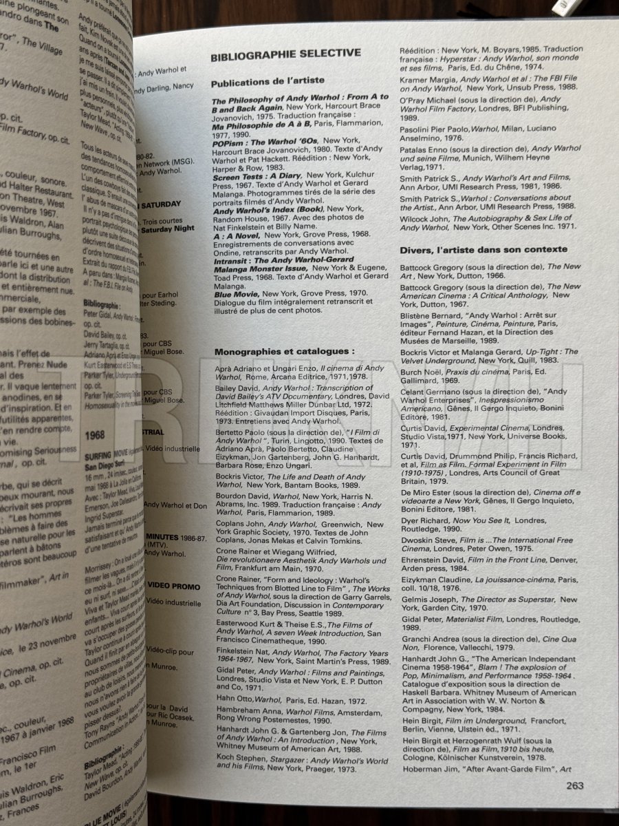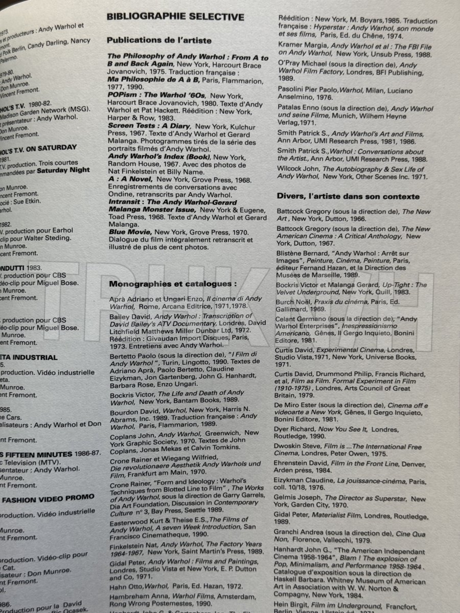 Kniha vydaná u příležitosti retrospektivní výstavy Andyho Warhola Centrem Pompidou ve spolupráci s MOMA.Silný svazek bohatě ilustrovaný v textu i mimo něj, osm oddílů, celkem 88 stran ilustrací z velké části, z velké většiny barevných, černých, modrých, r