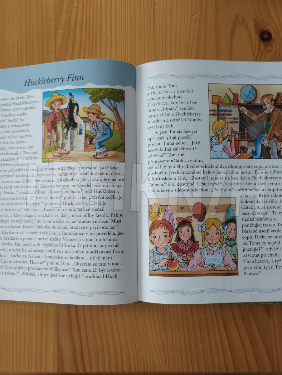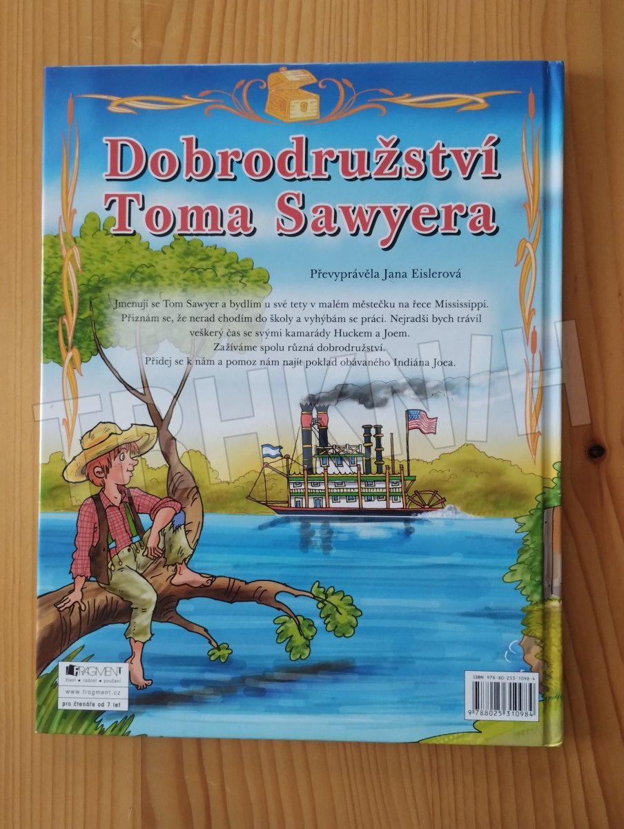 Jmenuji se Tom Sawyer a bydlím u své tety v malém městečku na řece Mississippi. Přiznám se, že nerad chodím do školy a vyhýbám se práci. Nejradši bych trávil veškerý čas se svými kamarády Huckem a Joeem. Zažíváme spolu různá dobrodružství. Přidej se k nám a pomoz nám najít poklad obávaného Joea Indiána. Známé příběhy od Marka Twaina jsou převyprávěny tak, aby jim pomocí krásných ilustrací Antonína Šplíchala porozuměly i malé děti.
