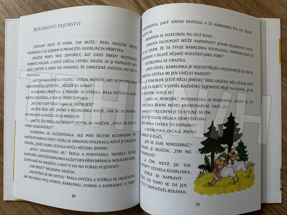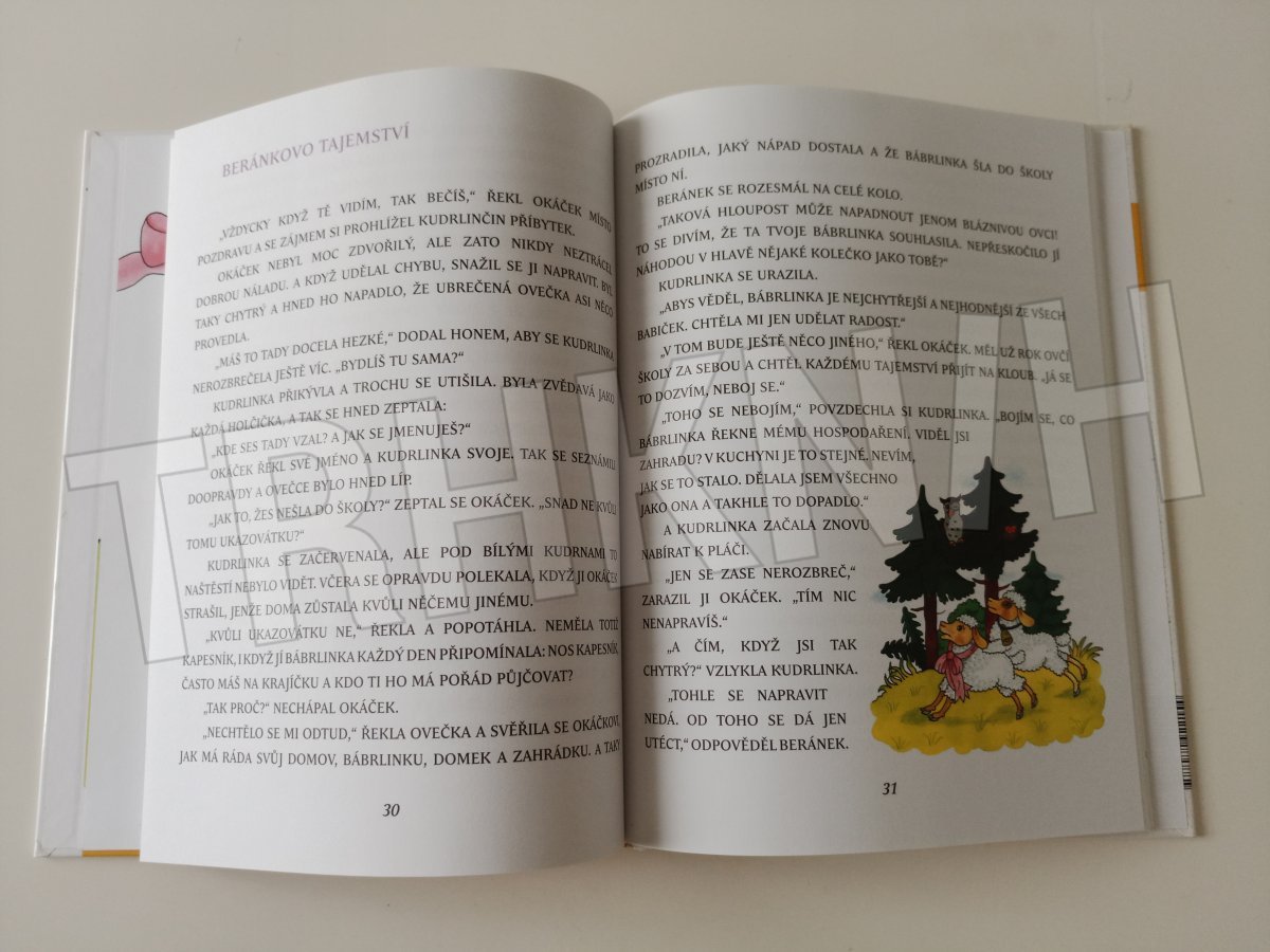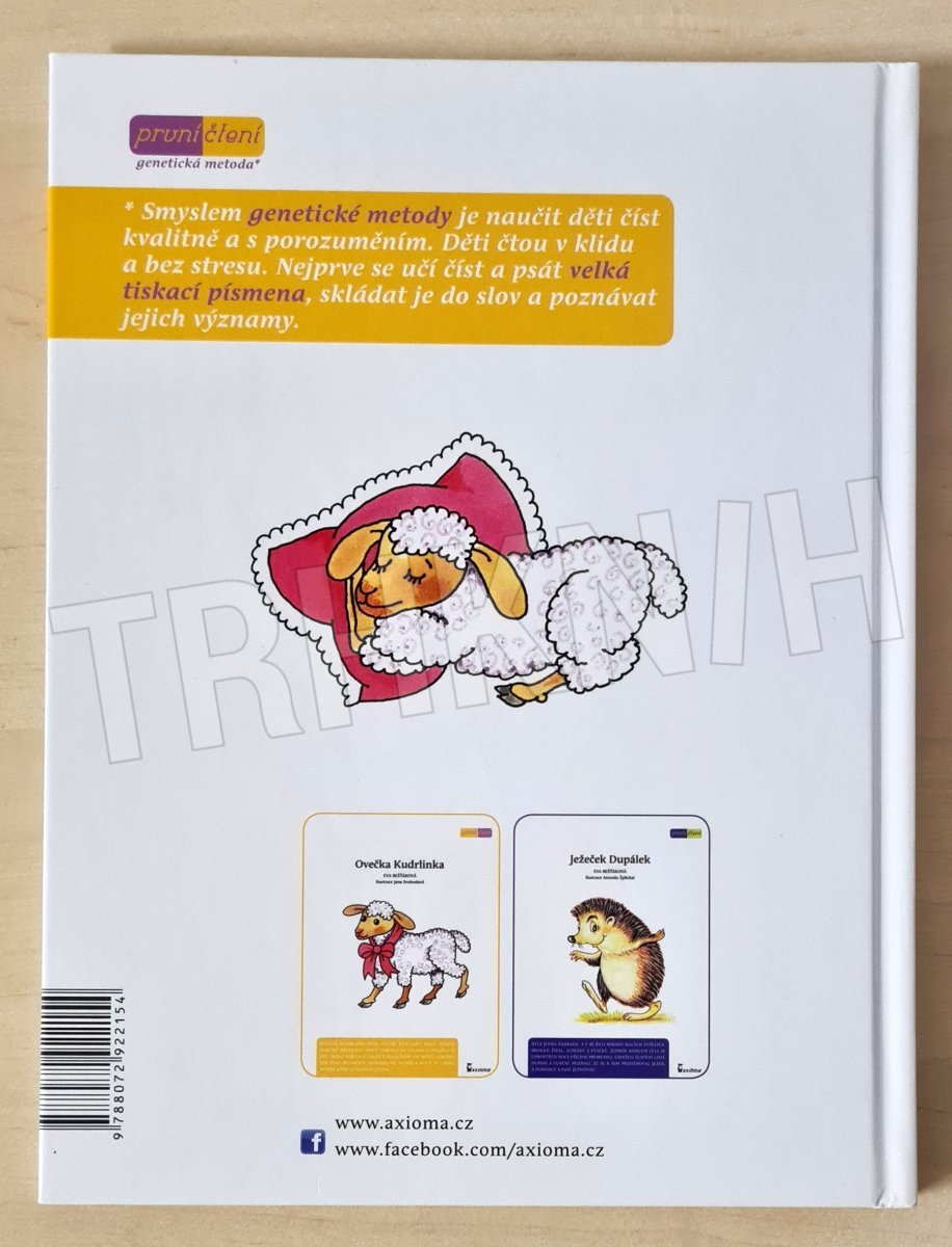 Veselá dobrodružství bábrlinky a její ovečky Kudrlinky potěší všechny, kteří rádi poslouchají pohádky. Text knihy je vysázen velkými tiskacími písmeny, což je jeden z principů tzv. genetické metody, kdy se děti nejdříve učí číst a psát velká písmena, skládat je do slov a poznávat jejich významy.