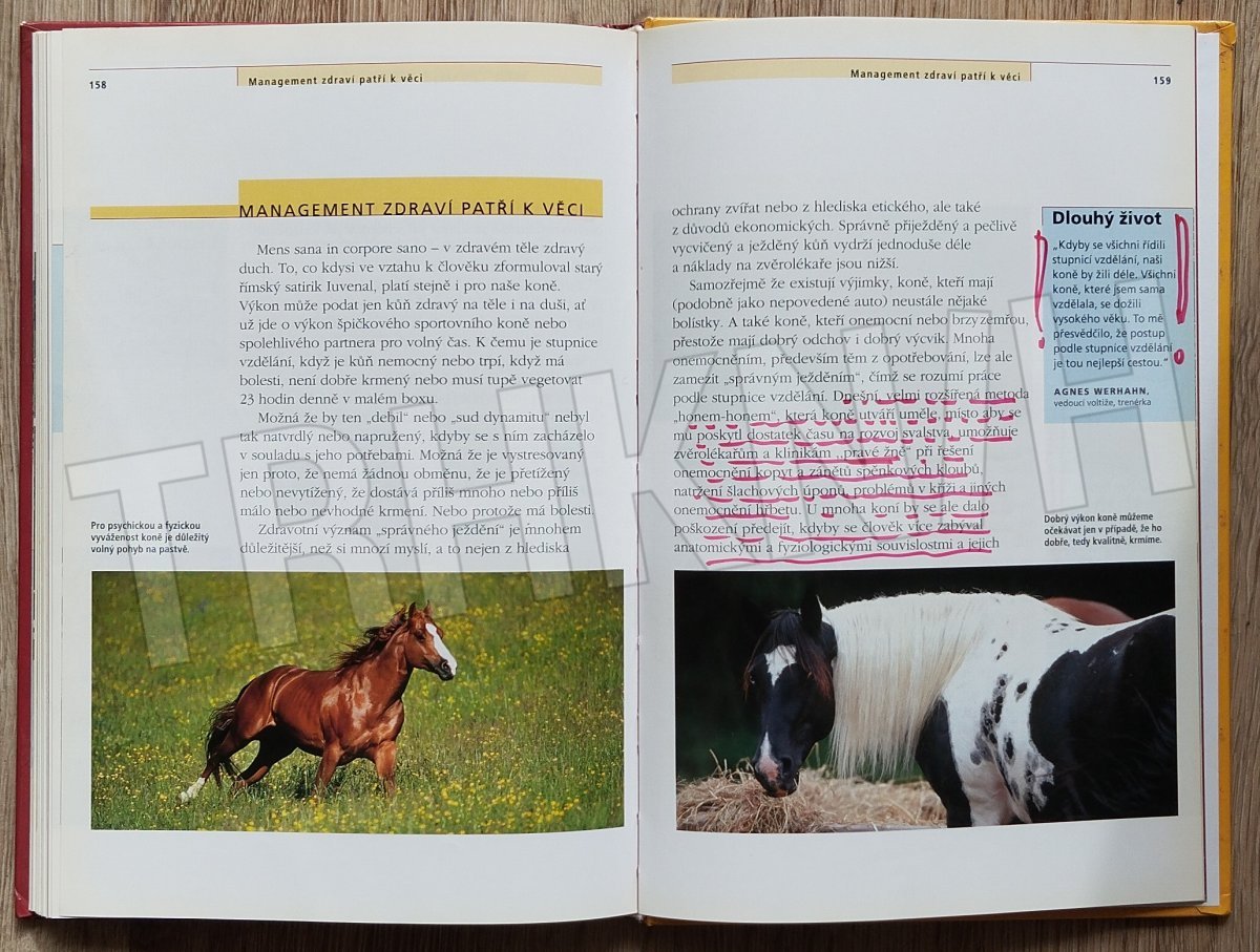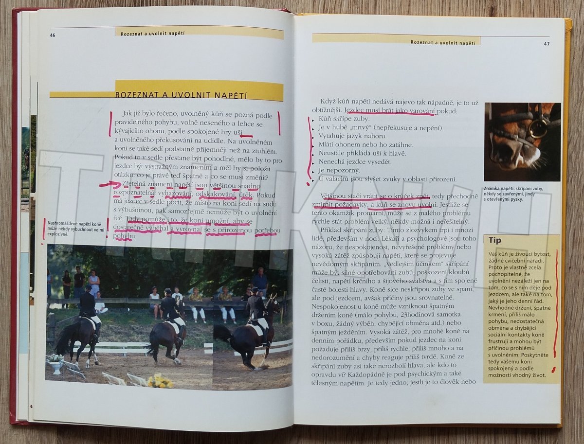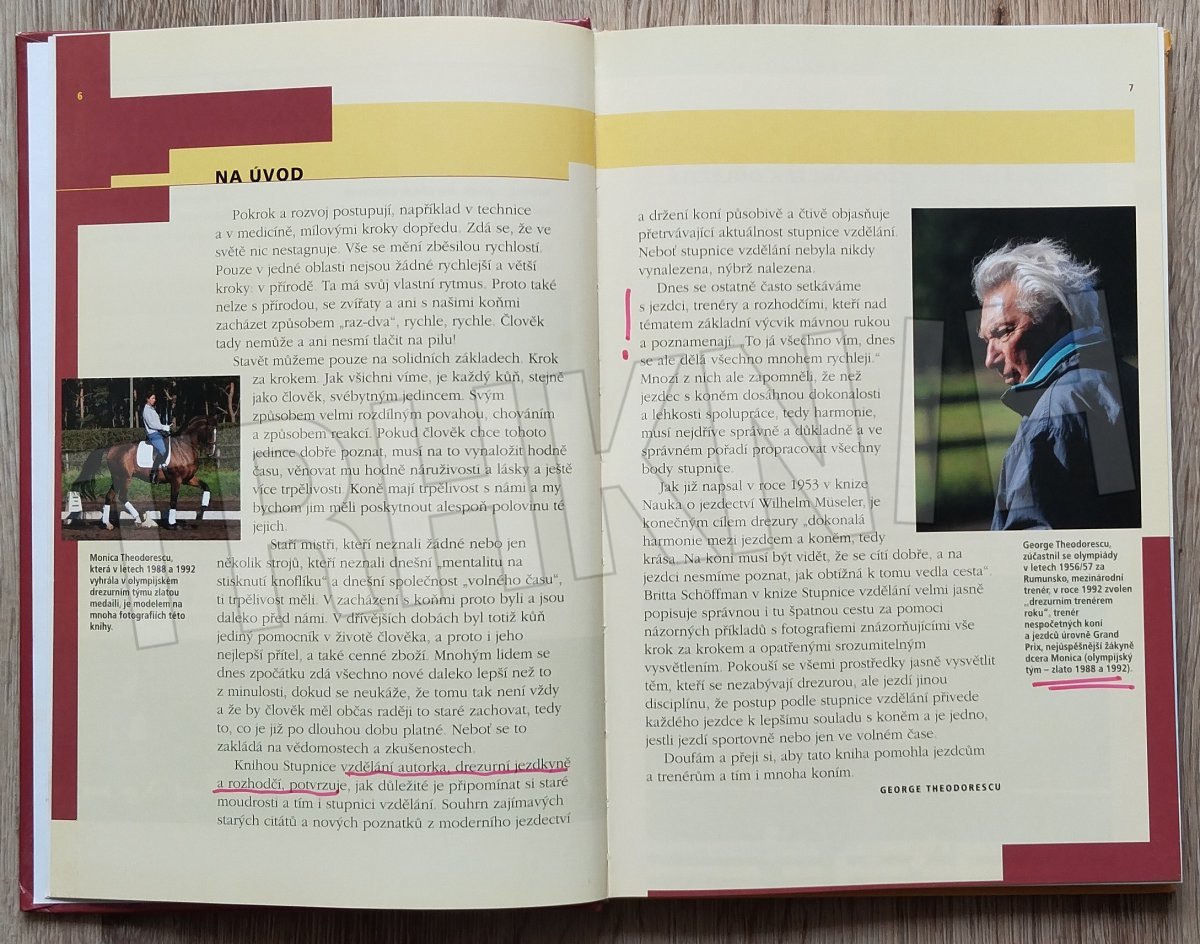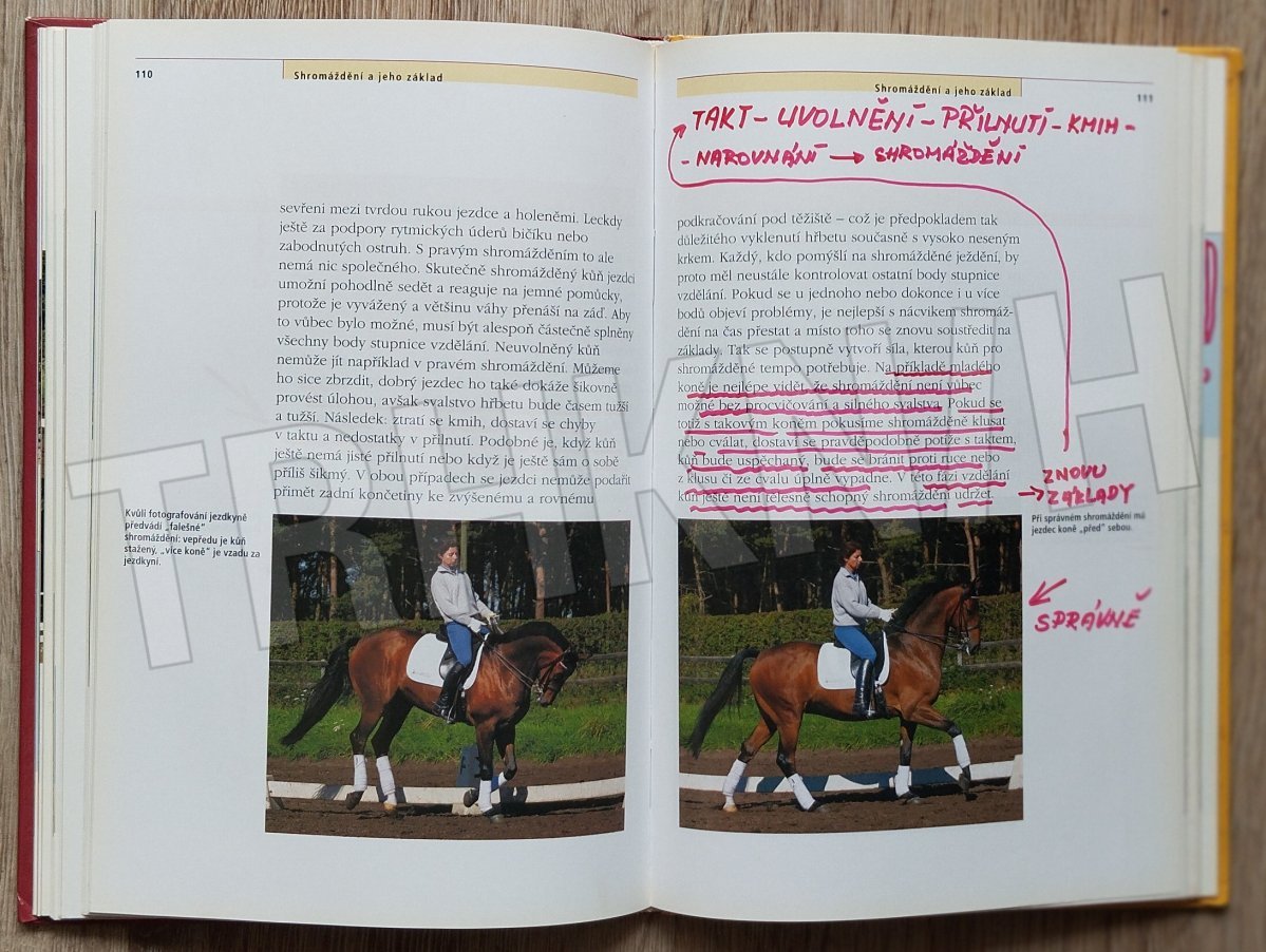 Šest bodů stupnice vzdělání (takt, uvolnění, přilnutí, kmih, narovnání, shromáždění) je základem každého způsobu ježdění na koni a světově uznávaným systémem, který vede k harmonii mezi jezdcem a koněm. Podlé této stupnice se koně jezdí od počátku výcviku až k soutěžím na nejvyšší úrovni. Kniha je ideálním základem tréninku pro každého jezdce, krok za krokem je tu detailně vysvětlen návod k úspěšnému ježdění ve všech disciplínách – skokovém ježdění, drezuře, jízdách všestrannosti, ježdění ve volném čase pro potěšení i při westernovém ježdění.