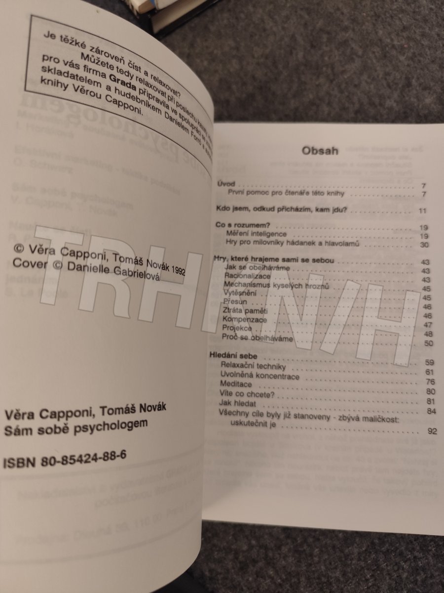 " Svoji psychiku mame zdanlive na dosah. Iluzornost sebepoznani vsak vetsinou odhalime v krizovych osobnich a mezilidskych situacich, v momentech stresu a krize, kdy hledame zivotni spokojenost a pokladame si otazku, co od sebe a od sveho zivota ocekavame, jake jsou nase pravdive motivace. Casto si pak posteskneme "nevyznam se v sobe" ci "nevyznam se v nem". Osvedcena a uspesna dvojice autoru jiz ve tretim, prepracovanem a doplnenem vydani sve knihy pomaha ctenarum prekonat uskali na ceste sebepoznani, jez je nezbytne k harmonickemu rozvoji osobnosti a k pocitu spokojenosti.
