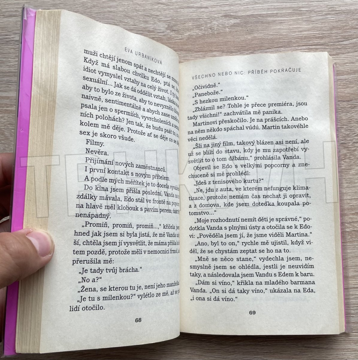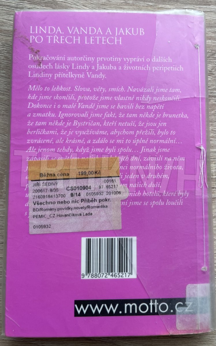 Pokračování autorčiny prvotiny vypráví o dalších osudech lásky Lindy a Jakuba a životních peripetiích Lindiny přítelkyně Vandy. Mělo to lehkost. Slova, věty, smích. Navázali jsme tam, kde jsme skončili, protože jsme vlastně nikdy neskončili. Dokonce i o malé Vandě jsme se bavili bez napětí a zmatku. Ignorovali jsme fakt, že tam někde je brunetka, že tam někde je Bystričan, kteří netuší, že jsou jen berličkami, že je využíváme, abychom přežili, bylo to zvrácené, ale krásné, a zdálo se mi to úplně normální… Ale jenom tehdy, když jsme byli spolu… Jinak jsme zápasili se světlem našich společných dní, závislí na něm jsme chtěli najít stejný žár ve slunci normálního života, ale nešlo to, tak jsme se schovávali jeden v druhém, propletení bouří našich těl a hladem našich duší, ukřižovaní pod přikrývkami neosobních hotelů, které byly domovem naší lásky… A vyčerpaní jsme se spolu loučili s pocitem, že takhle to dál nejde…