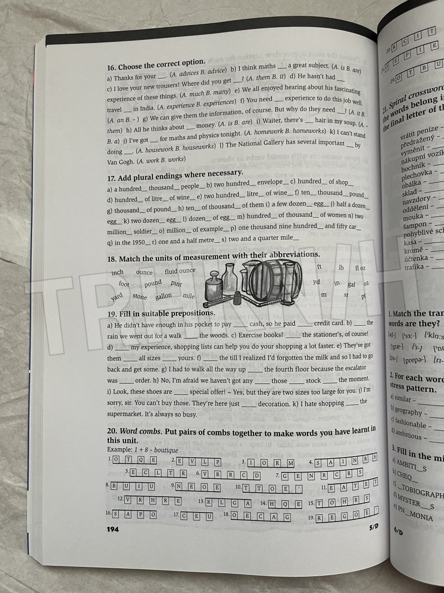 POUŽÍVANÁ a bohužel propiskou a to přibližně do 4. lekce (včetně) - nad hl. textem je psán překlad a cca 30 % cvičení ze zmíněných lekcí je vyplněno. Zbytek čistý, nepoužívaný. V zadní části je pracovní sešit - opět PÁR (cca 20-30%) cvičení vyplněných pro