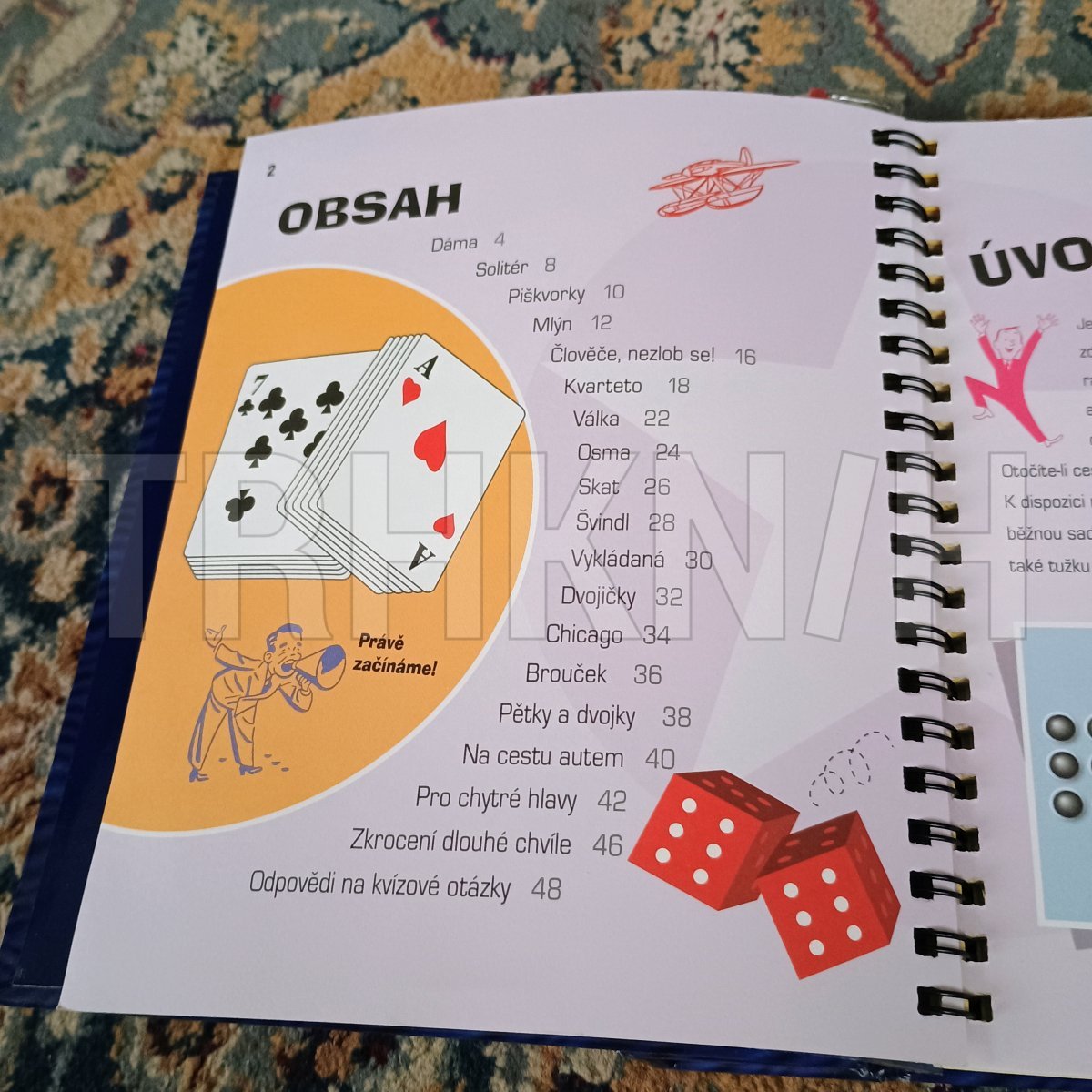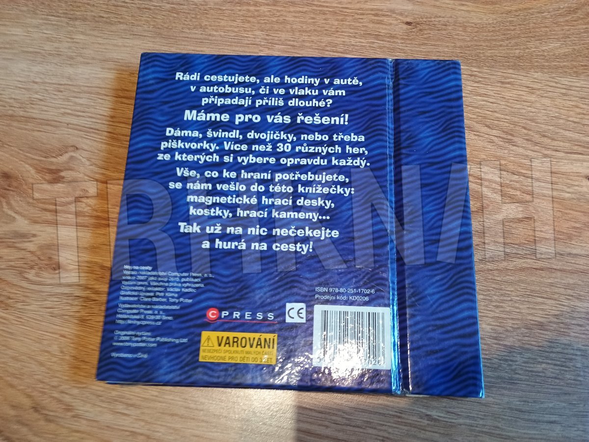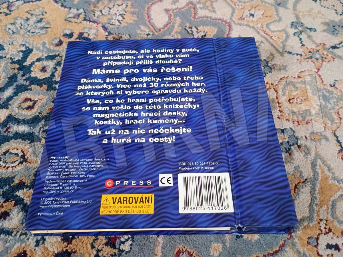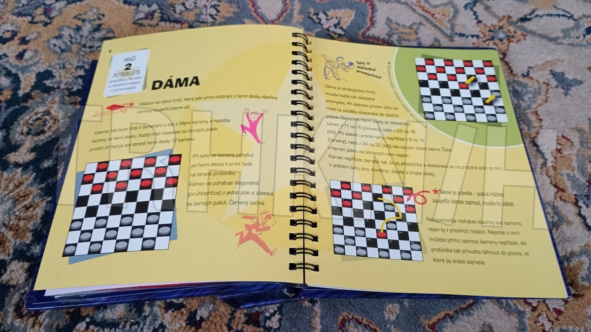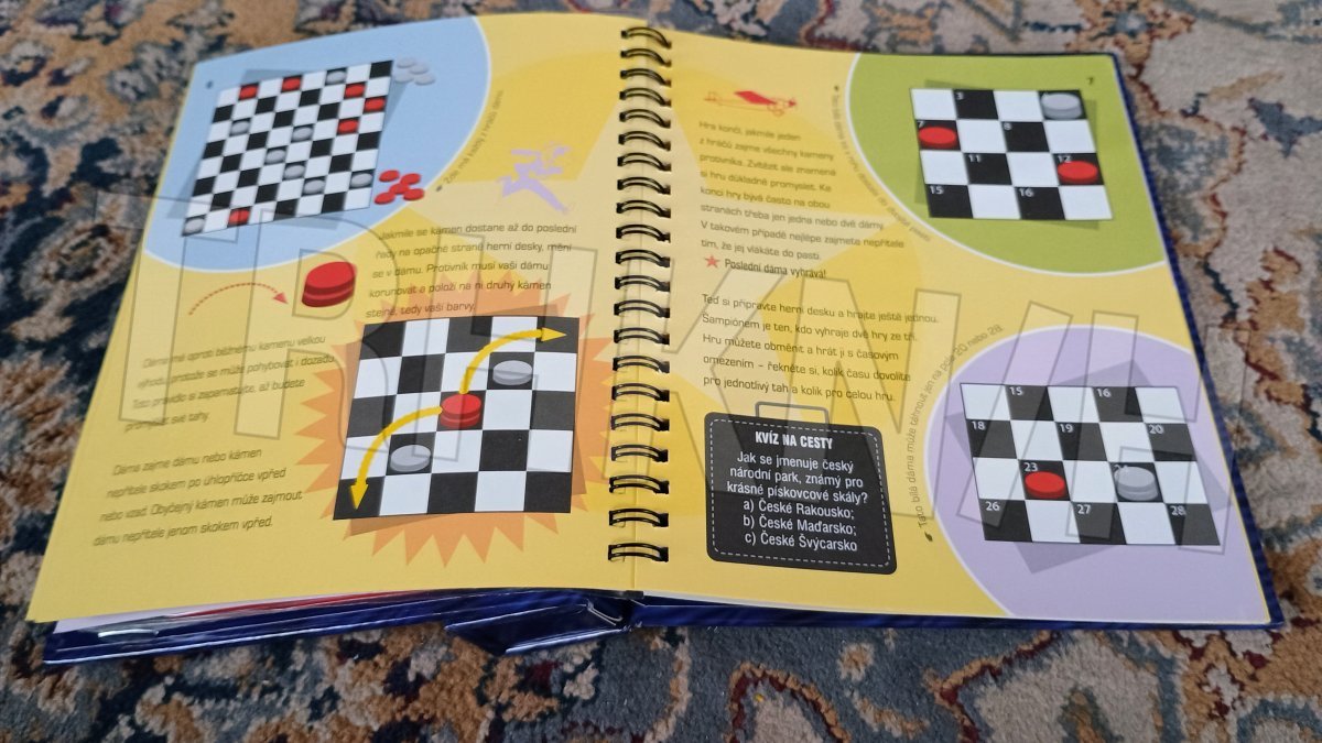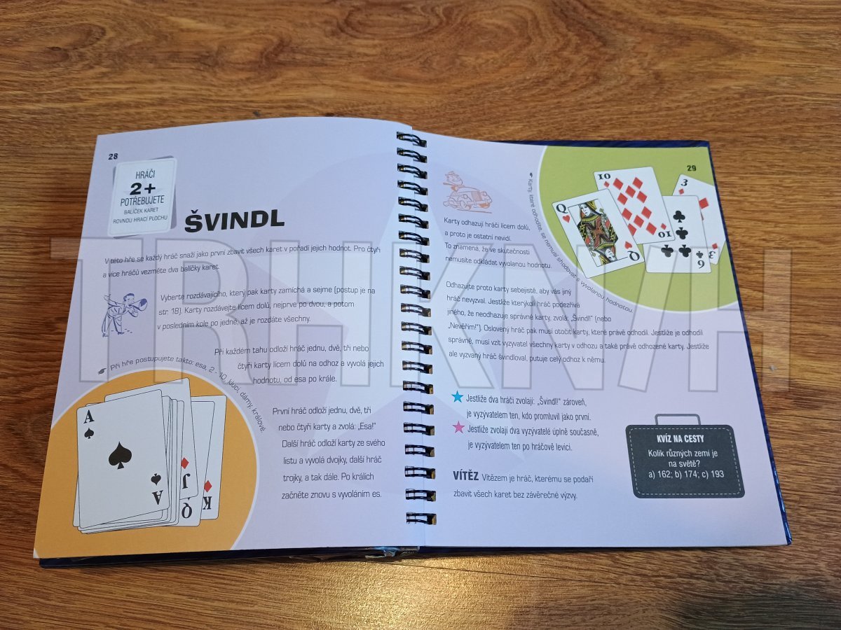 Dáma, solitér, piškvorky, mlýn, Člověče, nezlob se!, kvarteto, válka, osma, skat, švindl, vykládaná, dvojičky, Chicago, brouček, pětky a dvojky, Na cestu autem, Pro chytré hlavy. Magnetické hrací desky, kostky, hrací kameny...