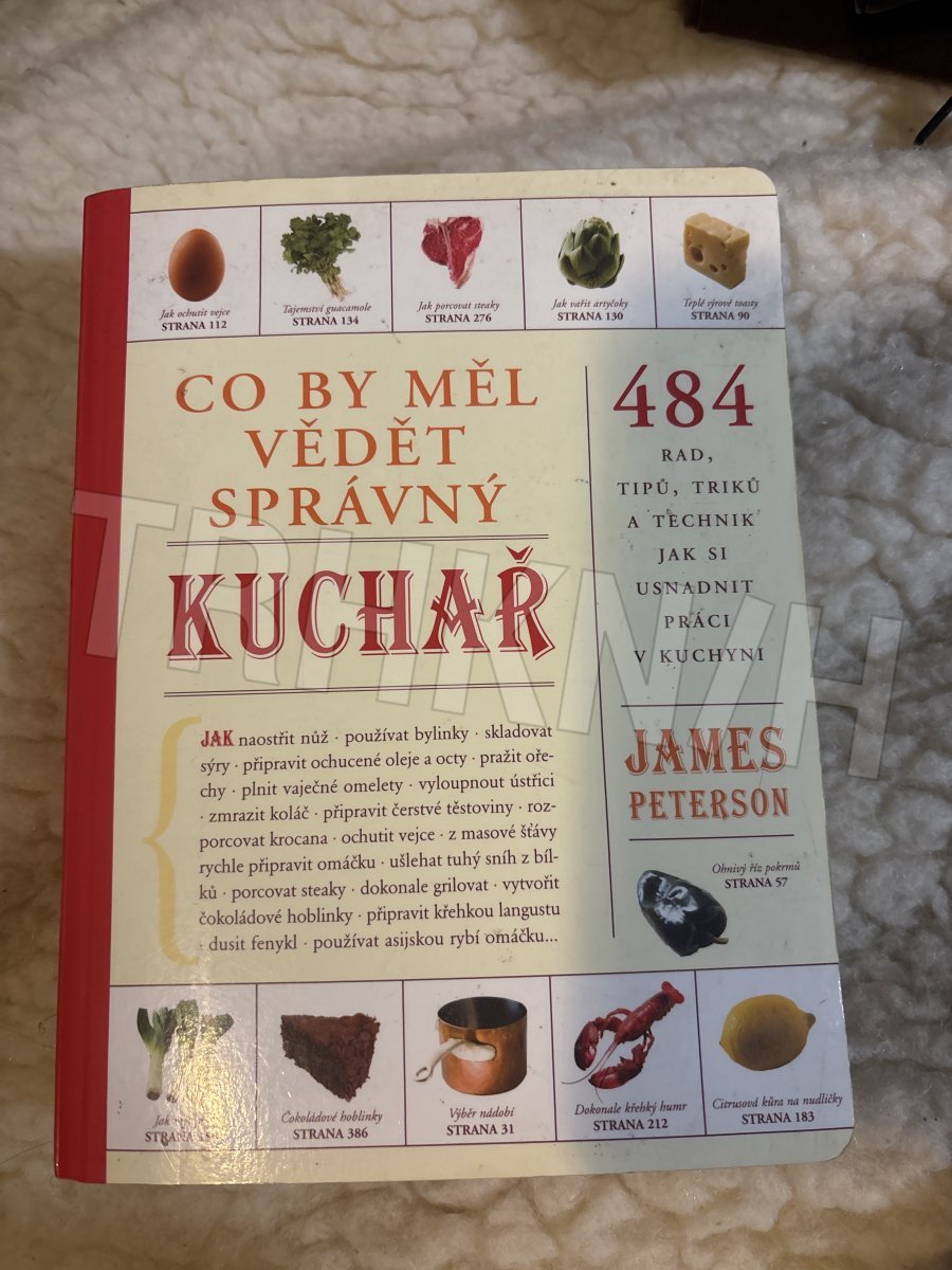 James Peterson Co by měl vědět správný kuchař 484 rad, tipů, triků a technik jak si usnadnit práci v kuchyni JAK naostřit nůž . používat bylinky . skladovat sýry . připravit ochucené oleje a octy . pražit ořechy . plnit vaječné omelety . vyloupnout ústřici . zmrazit koláč . připravit čerstvé těstoviny . rozporcovat krocana . ochutit vejce . upéct páj . z masové šťávy rychle připravit omáčku . ušlehat tuhý sníh z bílků . poznat čerstvé houby . porcovat steaky . dokonale grilovat . vytvořit čokoládové hoblinky . připravit křehkou langustu . vařit v páře . dusit fenykl . používat asijskou rybí omáčku .