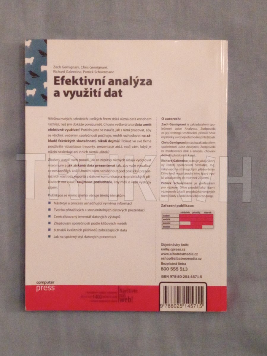 Většina malých, středních i velkých firem sbírá různá data mnohem rychleji, než jim dokáže porozumět. Chcete veškerá tato data umět efektivně využívat? Potřebujete se naučit, jak s nimi pracovat, aby se všichni, vedením společnosti počínaje, mohli rozhodovat na základě faktických skutečností, nikoli dojmů? Pokud ve své firmě používáte vizualizace (reporty, prezentace atd.), vadí vám, když je nikdo nesleduje ani z nich nemá užitek? Zkušení autoři vám poradí, jak ze záplavy různých údajů vydolovat maximum a jak získaná data prezentovat tak, aby vaše vizualizace neskončily v koši. Umožní vám nahlédnout pod pokličku prezentačních nástrojů, reportů a datové komunikace a na praktických příkladech vás naučí zaujmout posluchače, aby měli o vaše výstupy zájem.