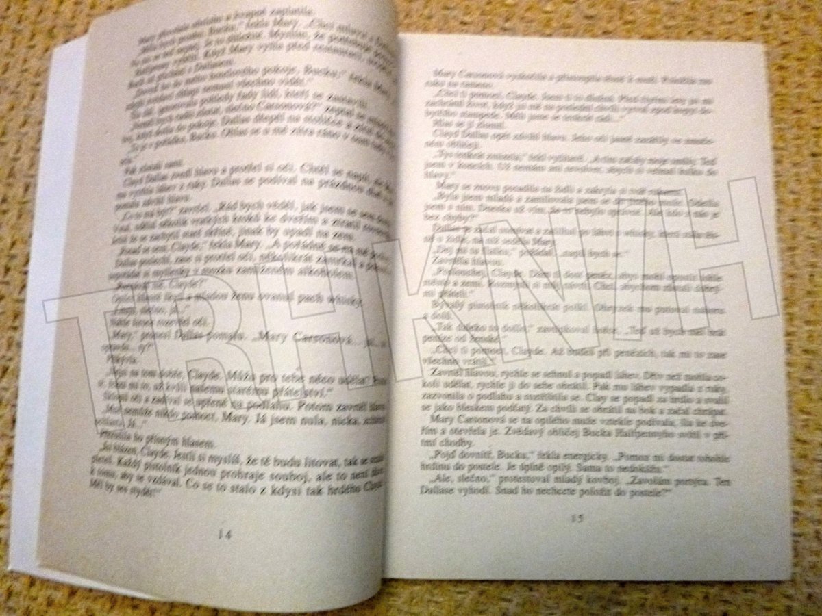 stav: Na hřbetu trochu prohnutá. V přední části kus stránky vytřižený, trochu ušpiněná. V zadní části lehce ohnutý dolní roh. Jinak dobrý stav.
