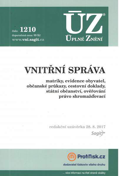 Publikace je rozdělena do tří kapitol: osobní stav obyvatelstva (občanské průkazy, cestovní doklady, matriky, evidence obyvatel, státní občanství), shromažďovací právo, a ostatní předpisy (zákon o ověřování). Od minulého vydání publikace byla změněna řada zákonů v souvislosti s novou právní úpravou přestupků účinnou od července 2017, kromě toho se z jiných důvodů změnil zákon o občanských průkazech, zákon o matrikách a zákon o evidenci obyvatel. Již začátkem roku 2017 došlo k velkým změnám vyhlášky o ověřování a vyhlášky k zákonu o matrikách, jménu a příjmení. Všechny změny jsou zvýrazněny tučně, odkazy na související předpisy jsou plně citovány.