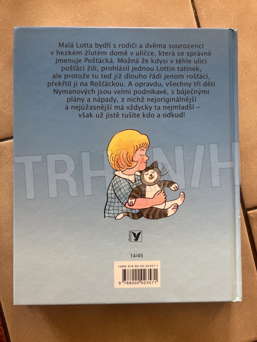 Malá Lotta bydlí s rodiči a dvěma sourozenci v hezkém žlutém domě v uličce, která se správně jmenuje Pošťácká. Možná že kdysi v téhle ulici pošťáci žili, prohlásil jednou Lottin tatínek, ale protože tu teď již dlouho řádí jenom rošťáci, překřtil ji na Rošťáckou. A opravdu, všechny tři děti Nymanových jsou velmi podnikavé, s báječnými plány a nápady, z nichž nejoriginálnější a nejúžasnější má vždycky ta nejmladší – Lotta. Přečtěte si, co všechno ta malá čiperka vymyslela!