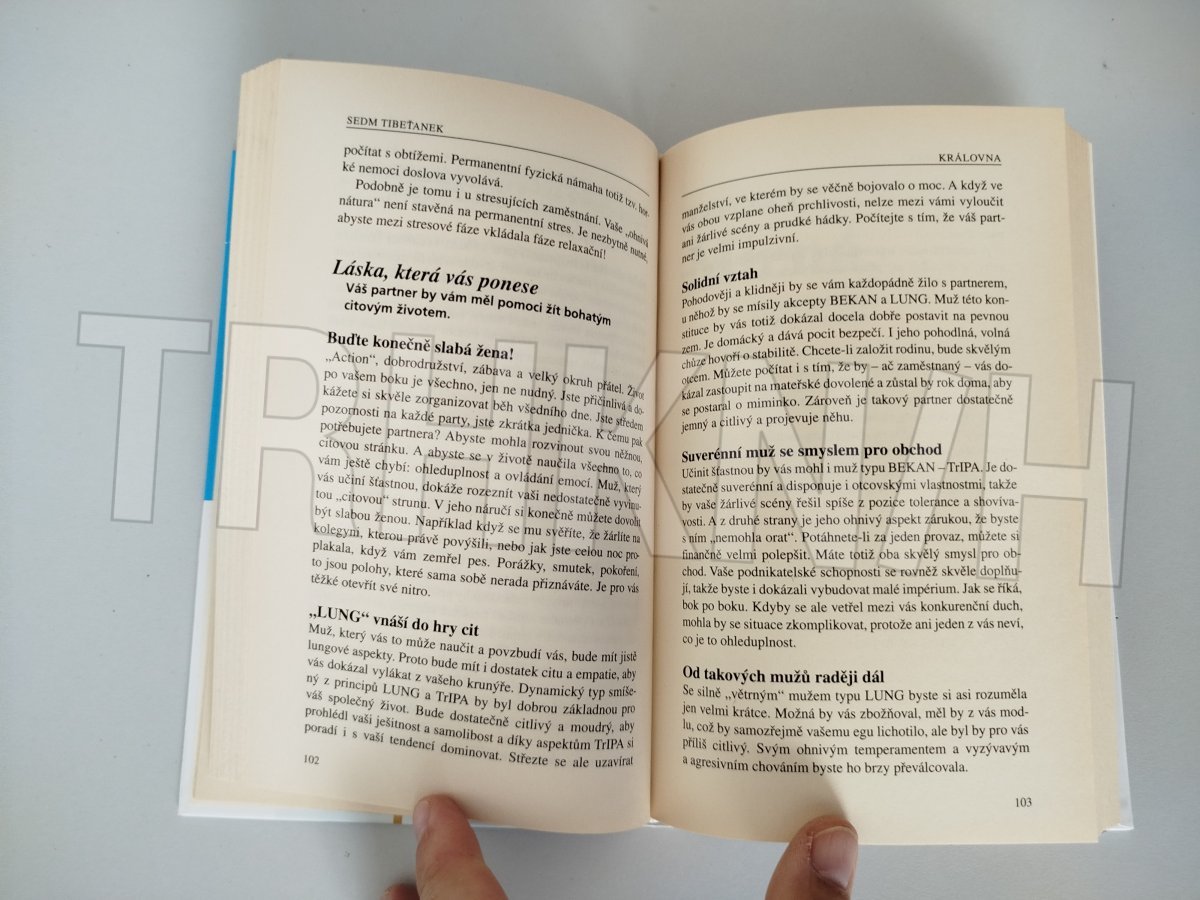 Tibetská typologie pro ženy. Kdo by netoužil po partnerském vztahu plném lásky, dobrém zaměstnání a pevném zdraví? Ženská typologie, založená na prastarém učení o harmonii energií uchovávaném po tisíciletí v tibetských klášterech, představuje na našem trh