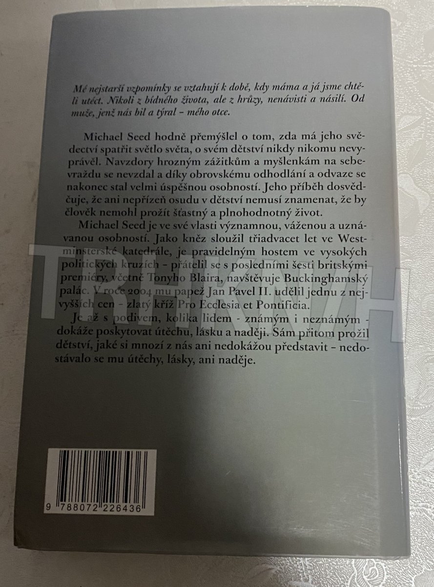 "Mé nejstarší vzpomínky se vztahují k době, kdy máma a já jsme chtěli utéct. Nikoli z bídného života, ale z hrůzy, nenávisti a násilí. Od muže, jenž nás bil a týral – mého otce." Michael Seed je ve své vlasti významnou, váženou a uznávanou osobností. Jako kněz sloužil třiadvacet let ve Westminsterské katedrále, je pravidelným hostem ve vysokých politických kruzích – přátelil se s posledními šesti britskými premiéry, včetně Tonyho Blaira, navštěvuje Buckinghamský palác. Sám přitom prožil dětství, jaké si mnozí z nás ani nedokážou představit – nedostávalo se mu útěchy, lásky, ani naděje.
