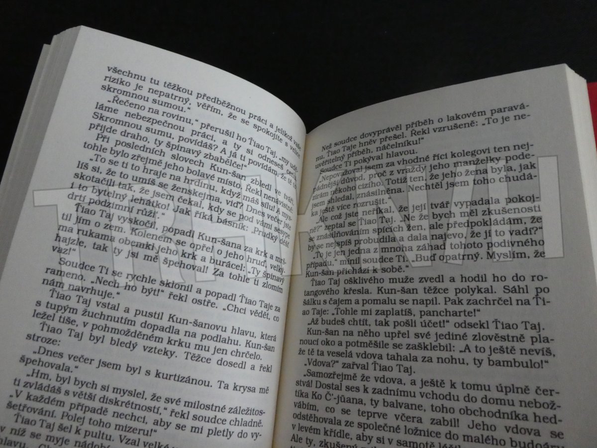 Ctitelé holandského spisovatele Roberta van Gulika a znalci detektivních metod jeho hrdiny, soudce Ti Žen-ťie, vědí, že soudce řeši vždy tři případy, navzájem se prolínající, najednou. Je to šálek čaje, který podává manžel své choti, nebo ve skutečnosti drží v pravé ruce dýku, kterou se jí chystá zabodnout do prsou? Tuto matoucí scénu spatří soudce Ti na nádherném starožitném lakovém paravánu v pracovně jednoho okresního soudce, kterého navštíví na své dovolené. Vzápětí už musí řešit případ skutečné vraždy kolegovy choti