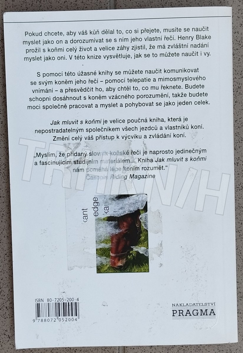 Pokud chtete, aby váš kůň dělal to, co chcete vy, musíte se naučit myslet jako on a dorozumívat se s ním jeho vlastní řečí pomocí telepatie a mimosmyslového vnímání a přesvědčit ho, aby chtěl to, co mu řeknete. Budete schopni dosáhnout se svým koněm vzácného porozumění, takže budete moci společně pracovat a myslet a pohybovat se jako jeden celek.Tato velice poučná kniha, která je nepostradatelným společníkem všech jezdců a vlastníků koní, změní celý váš přístup k výcviku a zvládání koní.