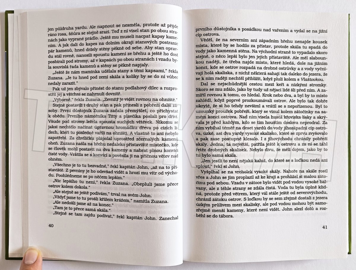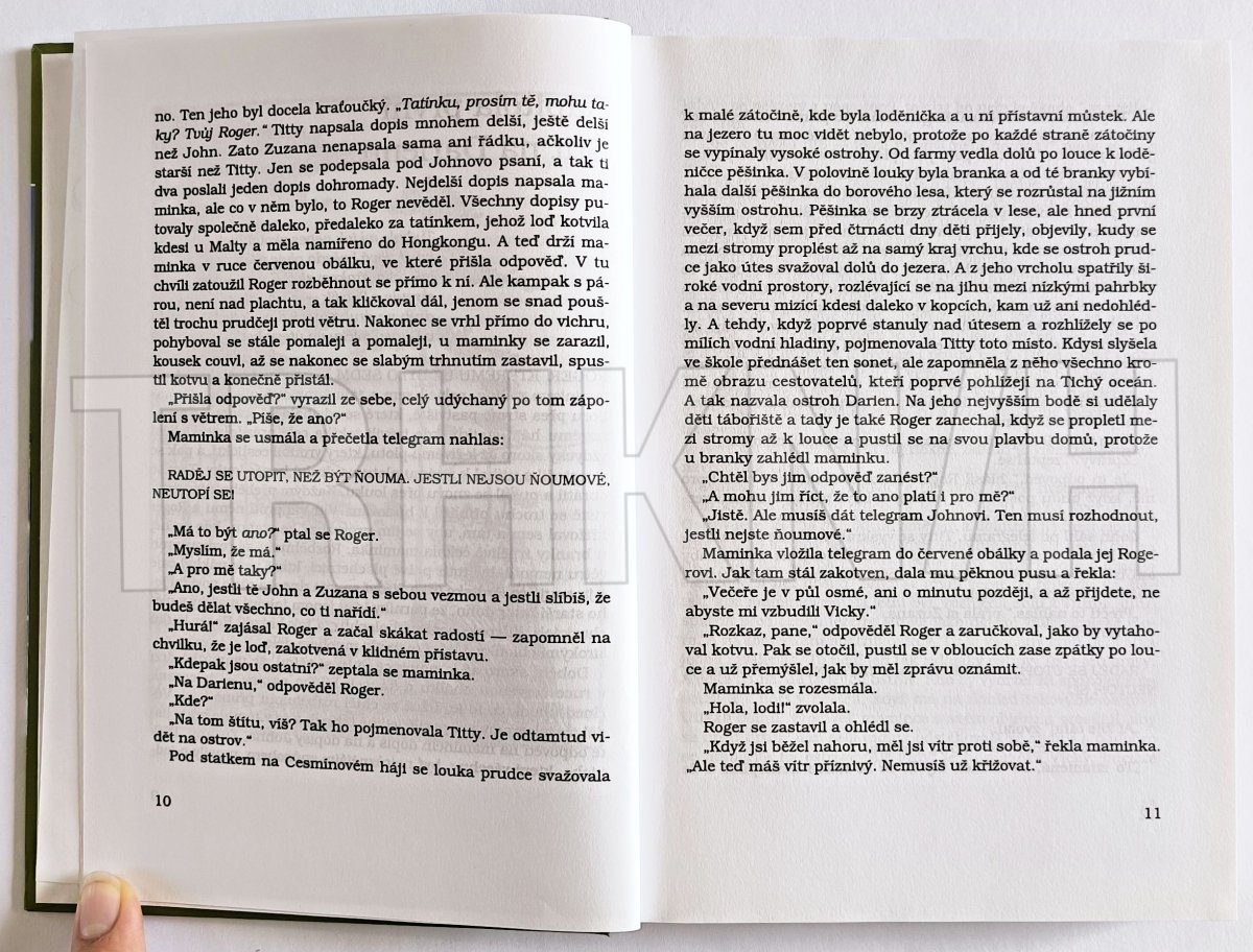 Úvodní a základní z 13 knih úžasných příběhů Vlaštovek a Amazonek a jejich dobrodružstvích na Ostrově Divokých koček i jinde. V této knize se můžete poprvé setkat s dětskými hrdiny, kteří budou vystupovat ve většině dalších příběhů. Jsou to sourozenci John, Zuzana, Titty a Roger Walkerovi (Vlaštovky) a sestry Nancy a Peggy Blackettovy (Amazonky).