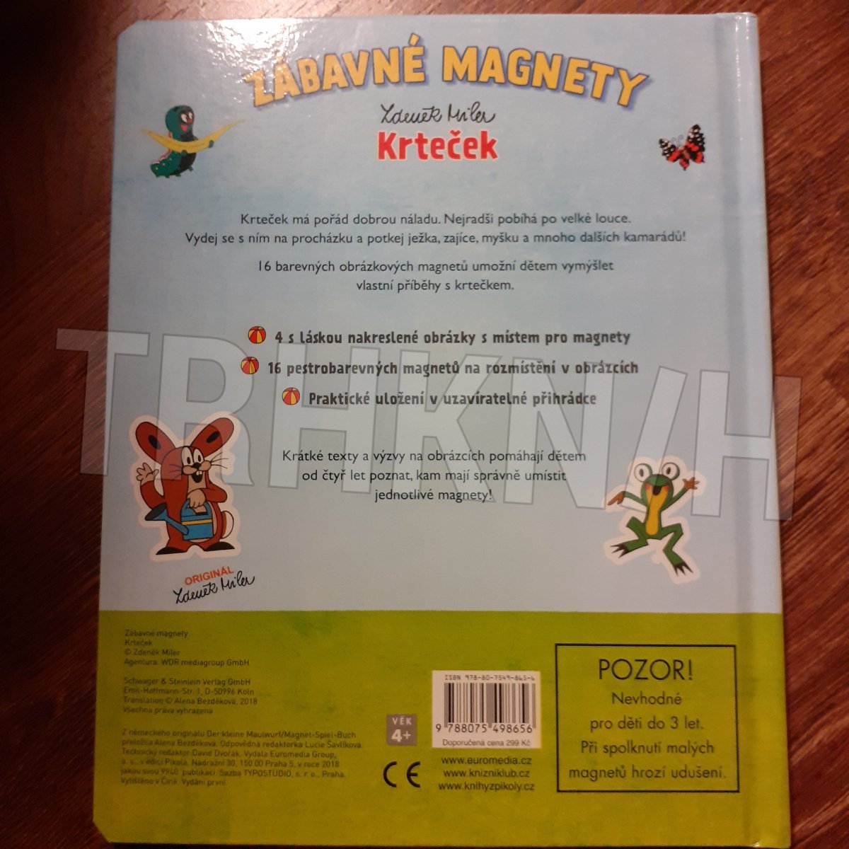 Krteček, jedna z nejoblíbenějších dětských postaviček, přináší novou zábavu! Na čtyřech krásných barevných pozadích se pomocí 16 magnetů mohou odvíjet příběhy krtka i jeho kamarádů myšky, zajíce, žabky, ježka, veverky a ostatních zvířátek.