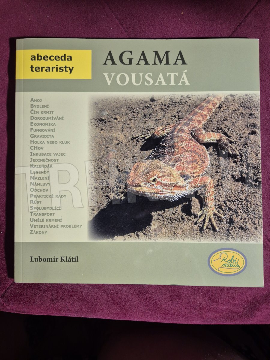 Agama vousatá je velmi oblíbený druh pouštní agamy. Po zajištění základních podmínek pro chov (vhodná velikost terária, zdroj tepla a UV záření) se hodí i pro začínající chovatele. V této knížce najdete vše, co potřebujete k zajištění základních životních potřeb tohoto velmi pěkného a komunikativního zvířete. Kniha je přehledně rozdělena do kapitol, je zde věnována pozornost základní péči, rozmnožování, chovu mláďat, možným komplikacím v chovu, vztahu k člověku, biologii druhu atd... Své si zde najdou začátečníci i zkušení chovatelé. Vše je doplněmo mnoha kvalitními barevnými fotografiemi a obrázky.