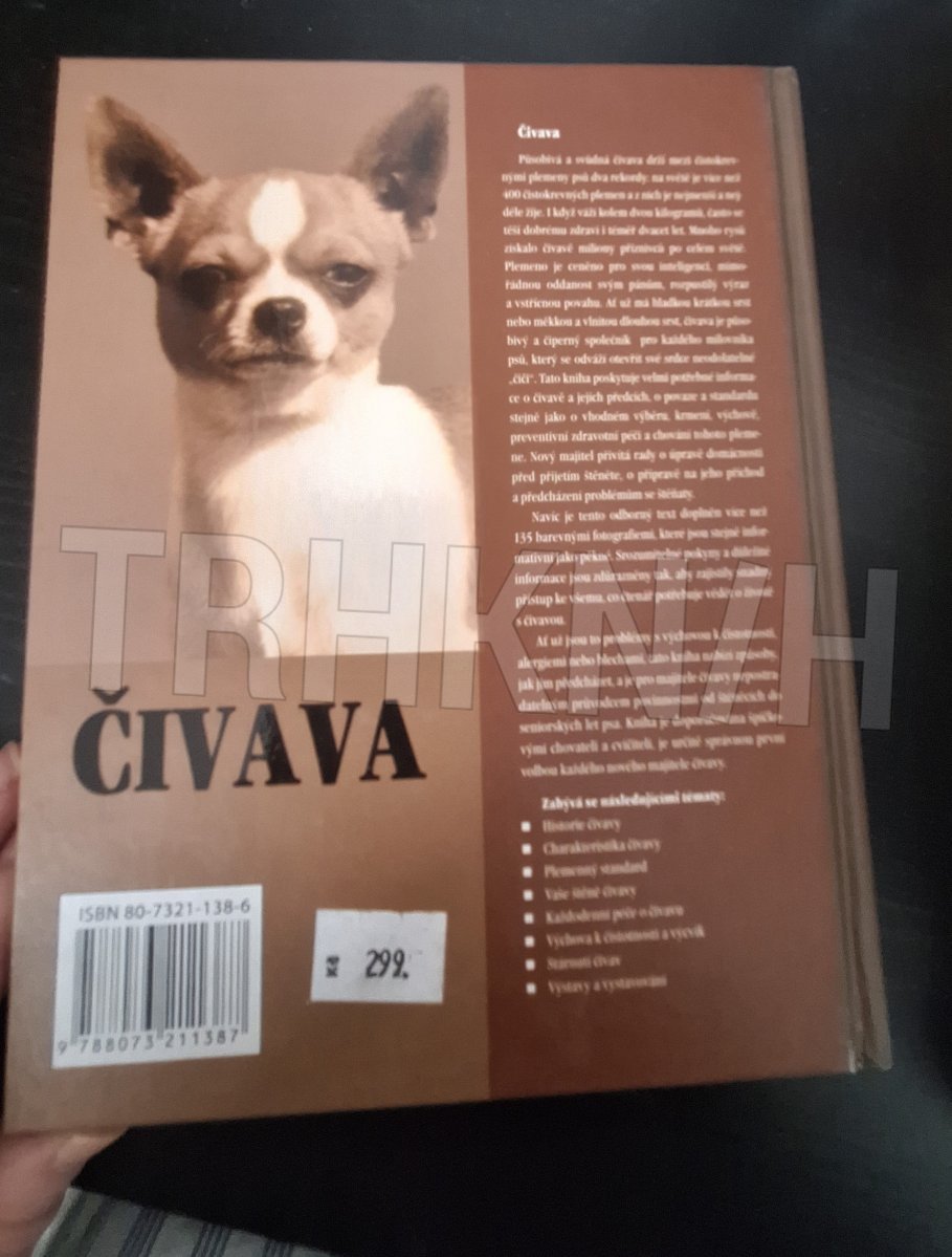 Kniha poskytuje velmi potřebné informace o čivavě a jejích předcích, o povaze a standardu, stejně jako o vhodném výběru, krmení, výchově, preventivní zdravotní péči a chováni tohoto plemene. Odborný text je doplněn 135 barevnými fotografiemi.