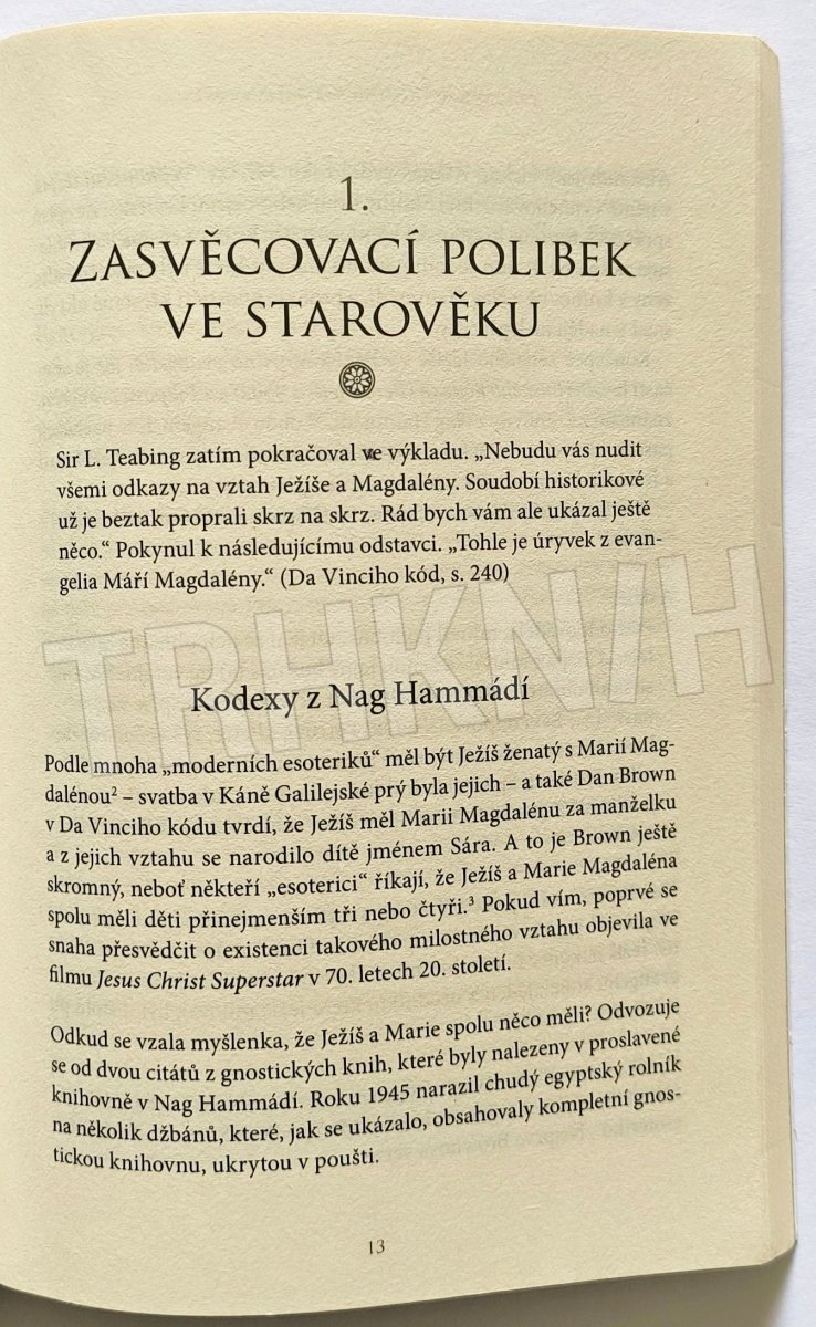 Nejslavnější bestseller Dana Browna - Da Vinciho kód - se dočkal mnoha vydání po celém světě a na jeho motivy byl natočen i celovečerní film. John van Schaik se ve svém slavném díle snaží na podkladě analýzy historických pramenů zodpovědět základní otázky, které v čtenáři evokuje i četba Brownova nejslavnějšího díla: jaké je postavení žen v církvi, jaký byl vztah k sexualitě v dobách Ježíše Krista a konečně i v jakém vztahu tedy skutečně byla Marie Magdaléna k Ježíši Nazaretskému.Text vás stručně, ale přehledně a erudovaně provede dějinami esoterního křesťanství od samotného Ježíše, přes gnostickou literaturu, příběhy o rytířích grálu až po otázky vztahu esoterického poznání a moderní církve.