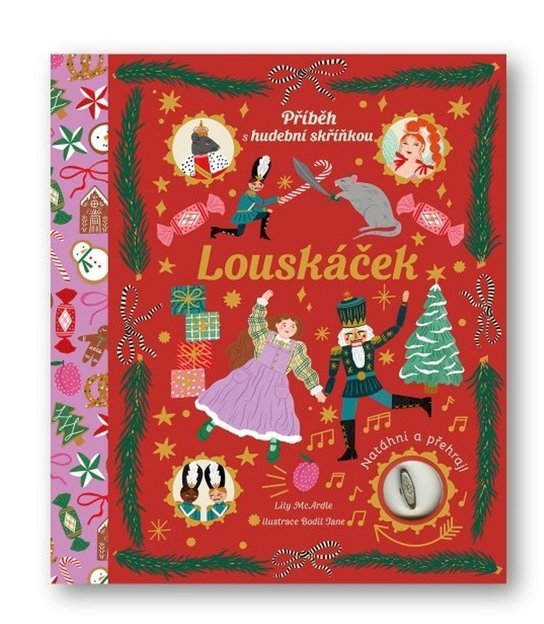"Pojď se mnou, ukážu ti kouzelnou říši," řekne Louskáček, podá Klárce ruku a usadí ji na zlacené sáně. "Kupředu!" zavelí sobům... Rozezněte svůj domov kouzelnou hudbou z této interaktivní knížky, která obsahuje natahovací hrací strojek. Zní to, jako byste otevřeli hudební skříňku. Tato je navíc výjimečná, protože obsahuje pohádkový příběh! Přehrajte si "Květinový valčík" z baletu Louskáček od P. I. Čajkovského a vychutnejte si nádhernou hudbu jako podkres při čtení nestárnoucího vánočního příběhu.