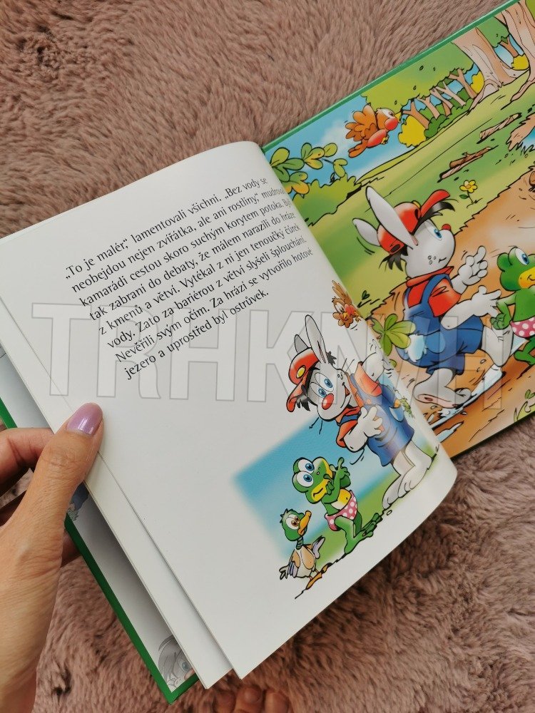 "To je malér," lamentovali všichni. "Bez vody se neobejdou nejen zvířátka, ale ani rostliny," mudrovali kamarádi cestou skoro suchým korytem potoka. Byli tak zabraní do debaty, že málem narazili do hráze z kmenů a větví. Vytékal z ní jen tenoučký čůrek vody. Zato za bariérou z větví slyšeli šplouchání. Nevěřili svým očím. Za hrází se vytvořilo hotové jezero a uprostřed byl ostrůvek.Zajíček Martin, veverka Zrzka, vrabčák Čimča, krtek Páťa, šnek Plíž a žabák Hop jsou kamarádi. Prožívají spolu různá dobrodružství. Přižene se zlá bouřka, vyschne potok... Nejsou ale na problémy sami. Mají přece přátele