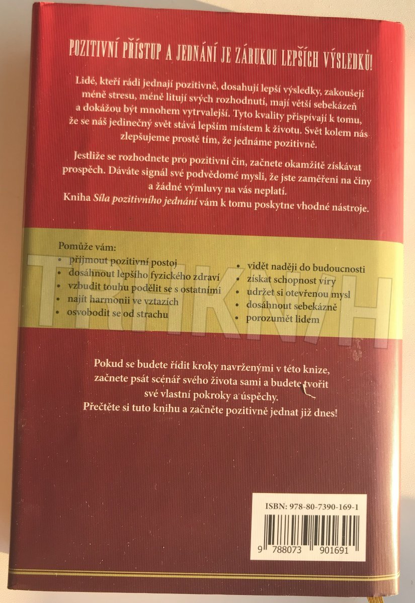 Od autora světového bestselleru Myšlením k bohatství. Kniha Síla pozitivního jednání čerpá z četných publikací Napoleona Hilla, významného autora motivačních knih, které zájemcům předkládají principy chování a jednání vedoucí k úspěchu. Velký důraz se klade na samostatné myšlení, sebedůvěru, vytrvalost a připravenost jednat bez otálení. Současný komentář k těmto zásadám dodává Judith Williamson, ředitelka Celosvětového výukového centra Napoleona Hilla. POZITIVNÍ PŘÍSTUP A JEDNÁNÍ JE ZÁRUKOU LEPŠÍCH VÝSLEDKŮ! Lidé, kteří rádi jednají pozitivně, dosahují lepší výsledky, zakoušejí méně stresu, méně litují svých rozhodnutí, mají větší sebekázeň a dokážou být mnohem vytrvalejší. Tyto kvality přispívají k tomu, že se náš jedinečný svět stává lepším místem k životu. Svět kolem nás zlepšujeme prostě tím, že jednáme pozitivně. Jestliže se rozhodnete pro pozitivní čin, začnete okamžitě získávat prospěch. Dáváte signál své podvědomé mysli, že jste zaměřeni na činy a žádné výmluvy na vás neplatí. Kniha Síla pozitivního jednání vám k tomu poskytne vhodné nástroje. Pomůže vám: - přijmout pozitivní postoj - dosáhnout lepšího fyzického zdraví - najít harmonii ve vztazích - osvobodit se od strachu - vidět naději do budoucnosti - získat schopnost víry - vzbudit touhu podělit se s ostatními - udržet si otevřenou mysl - dosáhnout sebekázně - porozumět lidem Pokud se budete řídit kroky navrženými v této knize, začnete psát scénář svého života sami a budete tvořit své vlastní pokroky a úspěchy. Přečtěte si tuto knihu a začněte pozitivně jednat již dnes!