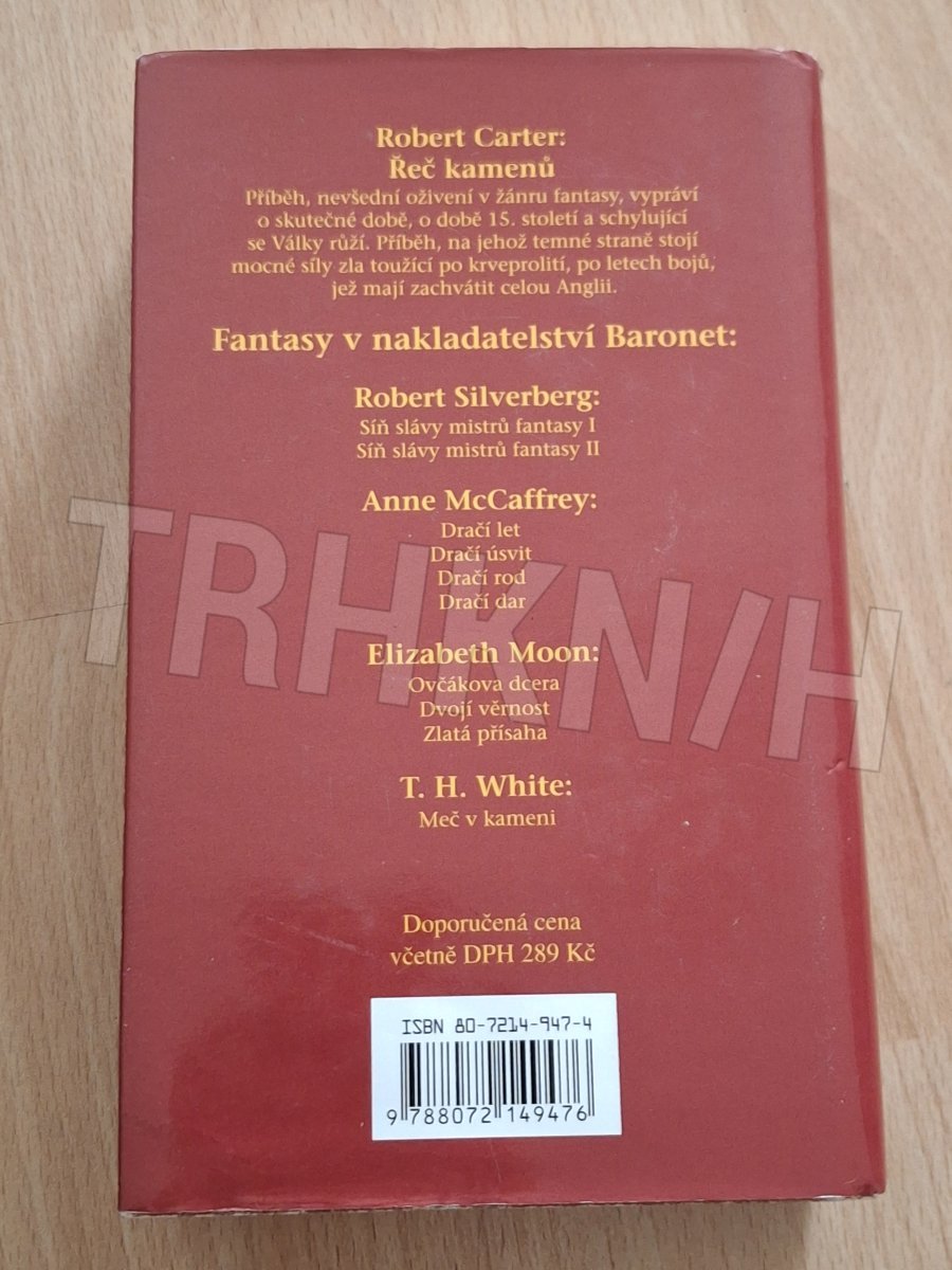Třídílná sága Roberta Cartera začínající románem Řeč kamenů, následují Tanec obrů a Bílý plášť, představuje nevšední oživení proti současnému komercializovanému fantasy. Je příběhem s cizelovaným popisem krajiny i charakterů, částečně historických., vypráví o skutečné době, o době 15. století a schylující se Války růží. Kouzelník Merlyn-Gwyndion se opět vrací do světa, aby válce zabránil. Ráz krajiny byl změněn a staré "válečné kameny" od nepaměti střežící ostrov nyní zpívají jinak - píseň vzteku, odporu a války. To vše se dovídá Will, učeň nevyzpytatelného kouzelníka, a učí se, nejprve váhavě, o lidové magii, rytířství, zbraních i středověkém lovu. Ale proč jej jeho mistr nazývá Dítětem osudu? Vyhledávání válečných kamenů je namáhavé a nebezpečné - na temné straně příběhu totiž stojí mocné síly zla toužící po krveprolití, po 30 letech bojů, jež mají zachvátit celou Anglii.