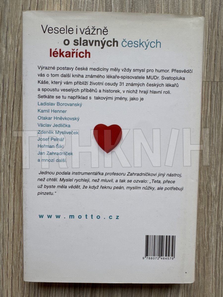 Výrazné postavy české medicíny měly vždy smysl pro humor. Přesvědčí vás o tom kniha známého lékaře-spisovatele MUDr. Svatopluka Káše, který vám přiblíží životní osudy 31 známých českých lékařů a spoustu veselých příběhů a historek, v nichž hrají hlavní roli.