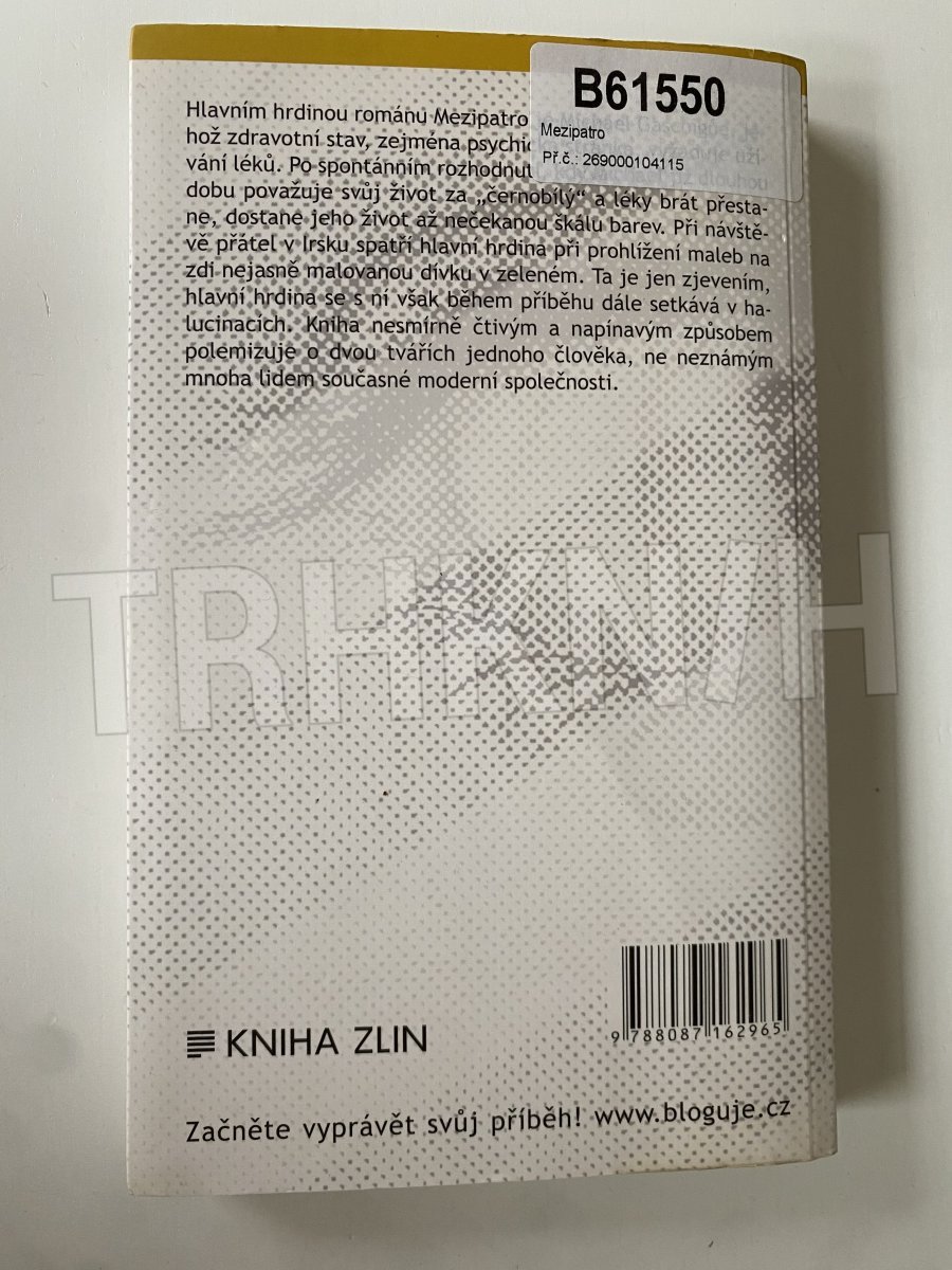 Hlavním hrdinou románu Mezipatro je Michael Gascoigne, jehož zdravotní stav - zejména psychická stránka - vyžaduje užívání léků. Po spontánním rozhodnutí, kdy Michael již dlouhou dobu považuje svůj život za "černobílý" a léky brát přestane, dostane jeho život až nečekanou škálu barev. Při návštěvě přátel v Irsku spatří hlavní hrdina při prohlížení maleb na zdi nejasně malovanou dívku v zeleném. Ta je jen zjevením, hlavní hrdina se s ní však během příběhu dále setkává v halucinacích. Kniha nesmírně čtivým a napínavým způsobem polemizuje o dvou tvářích jednoho člověka, ne neznámým mnoha lidem současné moderní společnosti.