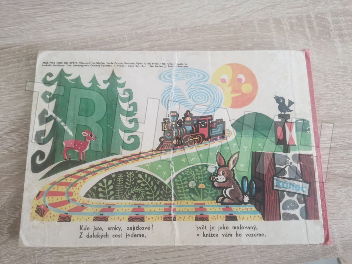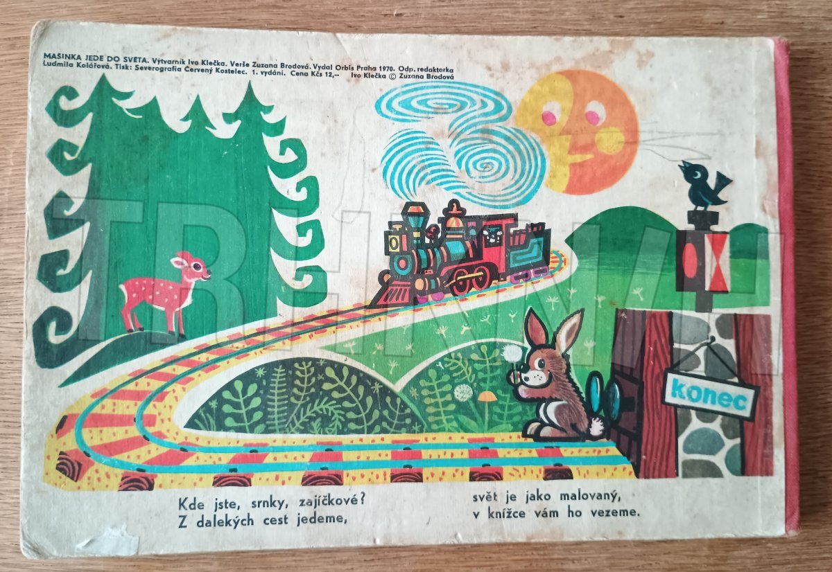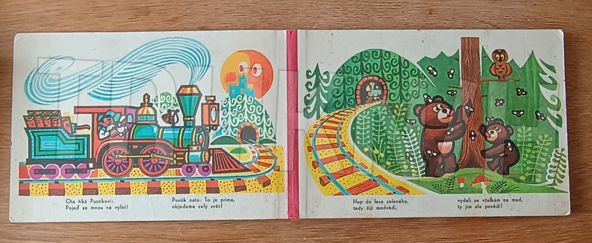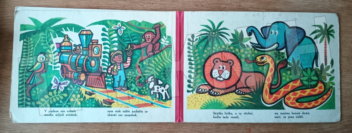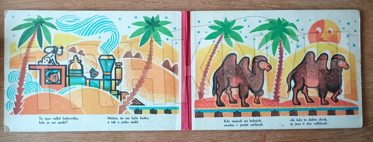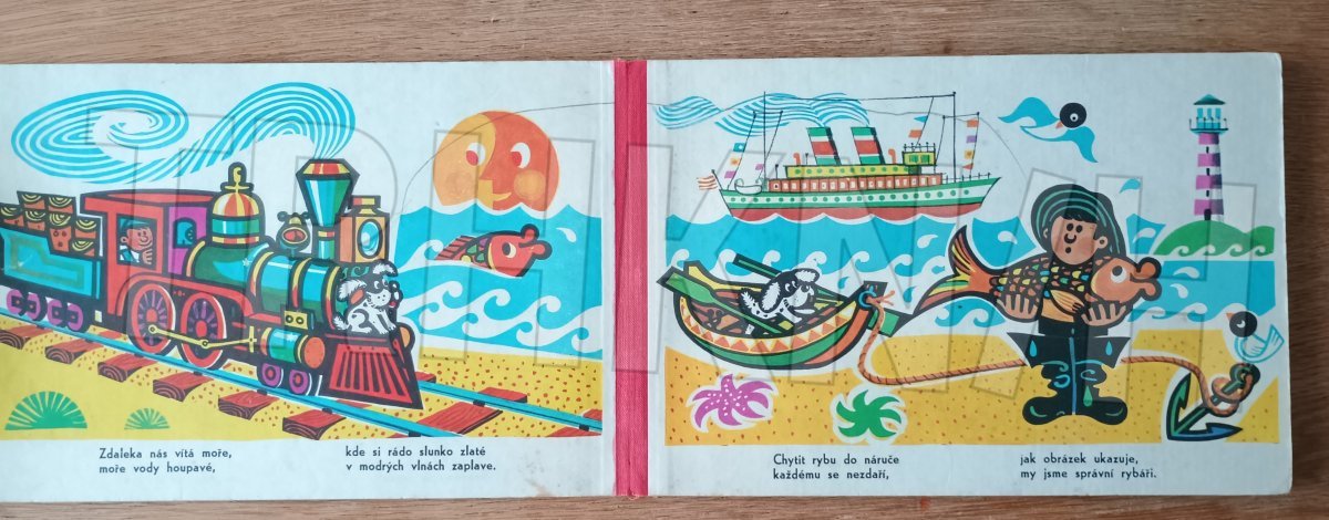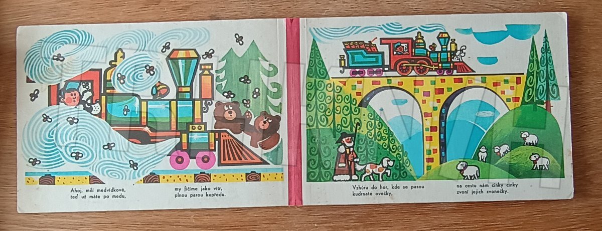 Veršované leporelo s ilustracemi o vláčku a jeho cestování
