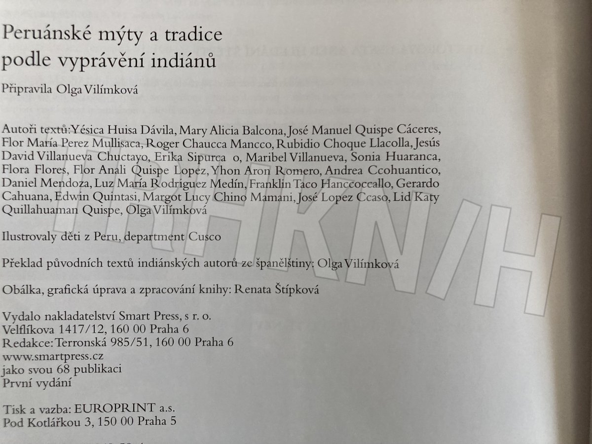 připravila Olga Vilímková ; autoři mýtů a příběhů Yésica Huisa Dávila ... [et al.] ; autoři textů o tradicích Franklin Taco Hanccoccallo ... [et al.] ; báseň Roger Chaucca Mancco ; [překlad původních textů indiánských autorů ze španělštiny Olga Vilímková]
