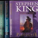 Pistolník Roland je poslední střelec přízračného světa ztraceného kdesi daleko v budoucnosti. Je to svět zdevastovaný jak fyzicky, tak morálně. A právě pravdu tohoto světa, zda je skutečným podsvětím, či pouze jen děsivou alternativou světa našeho, tvrdošíjně hledá Roland. I za cenu vražd a prokletí vlastní duše. Kniha sleduje jeho honbu za mužem v černém, neboť jenom on zná cestu k Temné věži, v níž se pronikají všechny světy. To on staví pistolníkovi do cesty napřed barmanku Allii z pouštní osady Tull a pak chlapce Jakea, jejichž životy jsou jedněmi z mnoha, jim