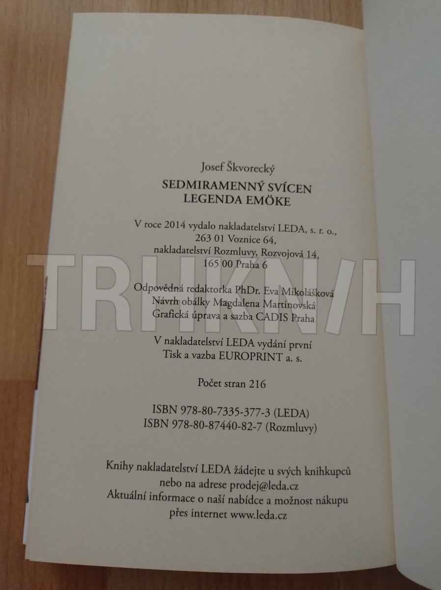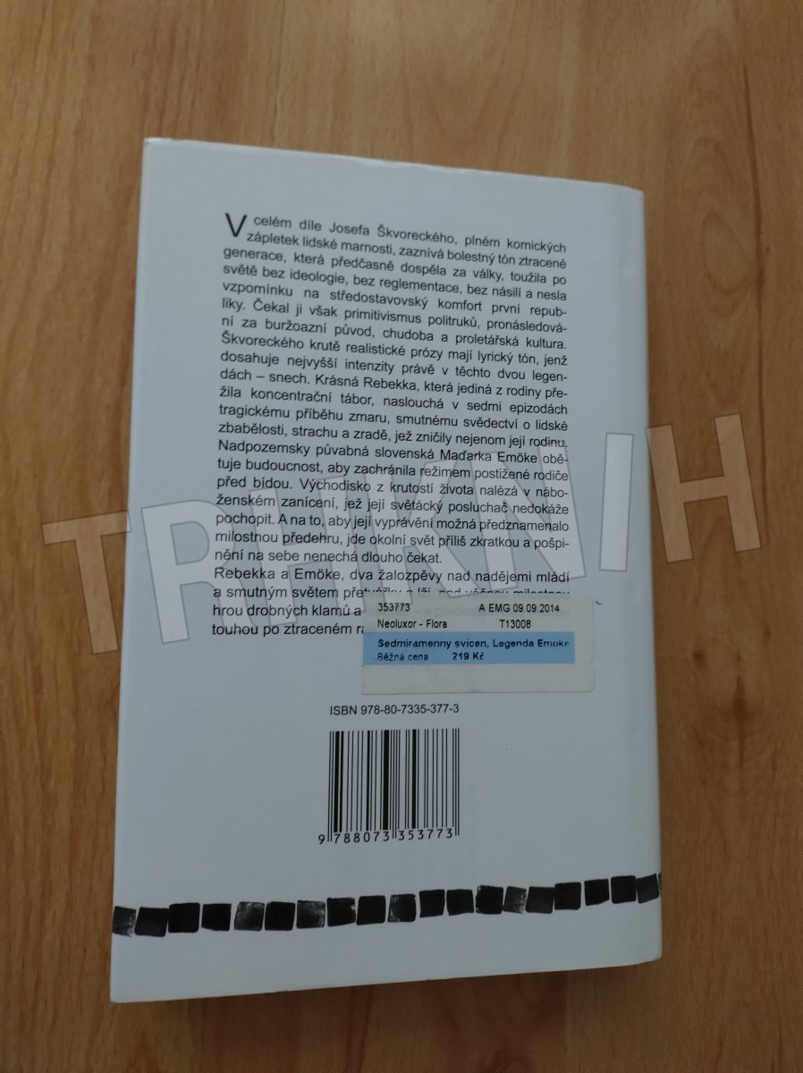 Sedmiramenný svícen: Na malém městečku K. žijí drobní lidé jako všude jinde. Nejsou ani zvlášť dobří, ani zvlášť špatní, jsou jenom různí - a pak je najednou patologická horečka dějin zažene pod společný jmenovatel, který je zároveň vizitkou násilné smrti: židé. Fašismus, ona nejhlubší „noc lidskosti", zalije v krvi prostou poezii a drobná dramata obyčejných lidských životů ... A právě o těchto obyčejných lidských životech, na které se zákeřně snáší stín fašismu, vypráví Škvorecký v „Sedmiramenném svícnu". Je to vzpomínková kniha, říká o ní autor. Napůl skutečnost, a napůl — snad sen, snad symbol. Proto také nejsou všechny příběhy knihy realistické. Ale, píše autor v jedné z povídek, v téhle historii nejde o realismus. Což není válka spíše fantasmagorie než skutečnost, a je-li to skutečnost, jsme my skutečně lidé?Odpověď na tuto otázku ovšem v knize není. Tu vůbec nelze nalézt v knihách, ale jenom na dně vlastního svědomí každého z nás. Legenda Emöke: Milostný příběh, ve kterém se vypráví, jak byla promarněna příležitost k veliké lásce, k opravdovému, čistému citu. Pražský redaktor se na rekreaci seznámí s mladou Maďarkou Emöke z Košic, která prožila neradostný život s hrubým statkářem, kterého zastřelili při pokusu o překročení hranic. Emöke hledá útěchu u Boha, v náboženském fanatismu. Redaktor ji pozvolna přesvědčuje o smyslu života v reálném světě, rodí se mezi nimi vzájemný cit.