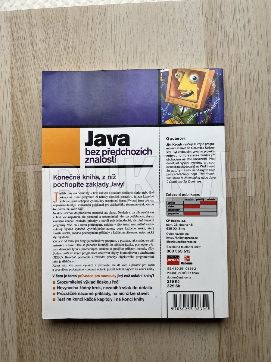 Konečně je zde kniha, s níž porozumíte Javě! Bez obvyklého odborného slangu, na množství jednoduchých příkladů, s kontrolními otázkami na koncích kapitol a se závěrečným testem sami a v krátké době zvládnete základy Javy: stavbu programů, výrazy a příkazy, ošetření výjimek a JDBC, zvládnete zkrátka vytváření fungujících programů v Javě! Otevřte knihu a staňte se programátory.