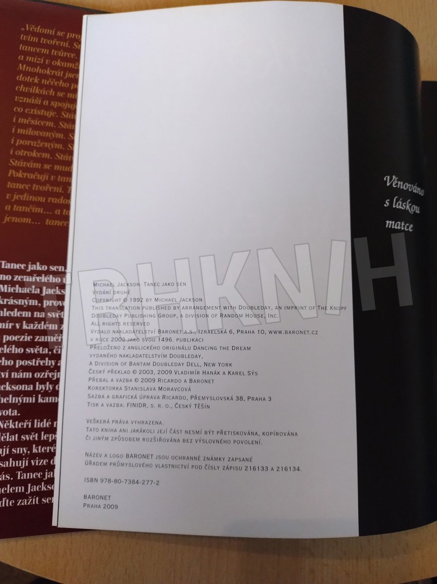 Druhá kniha úspěšného autora Michaela Jacksona, nedávno zesnulého zpěváka a tanečníka, je nesmírně krásným, provokativně osobním pohledem na svět kolem nás a na vesmír v každém z nás. Ať se jeho próza a poezie zaměřuje na tvorbu, děti celého světa, či třeba potíže slona, jeho postřehy a starostlivé účastenství nám ozřejmí, že pro Michaela Jacksona jsou důvěra, láska a víra úhelným i kameny dobře prožitého života. Někteří lidé nevědí, jak mohou udělat svět lepším, zatímco jiní mají sny, které jsou tak mocné, že obsahují vize dotýkající se každého z nás. Tanec jako sen byl napsán Michaelem Jacksonem, člověkem s vizí.