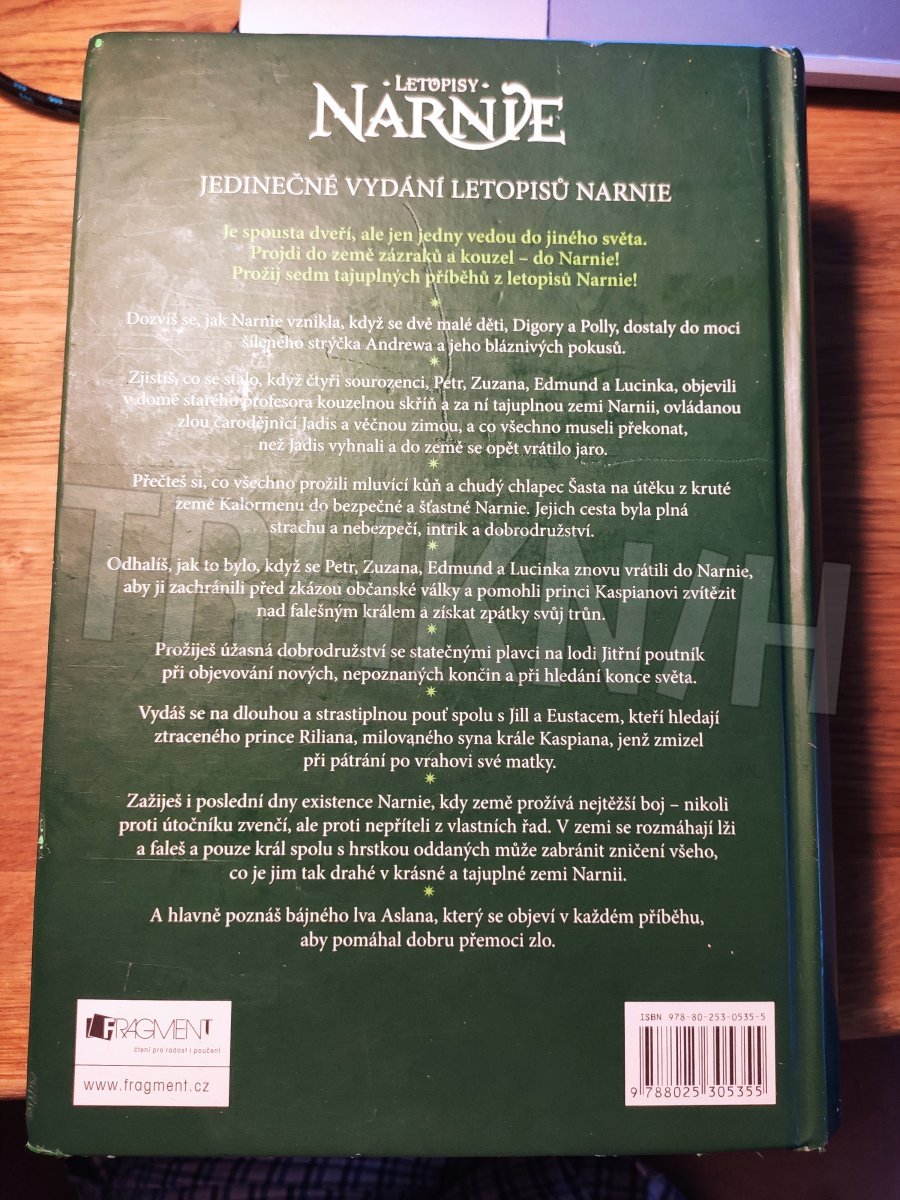 Svět fantazie vám přináší zcela nový a jedinečný rozměr! Všech sedm příběhů Letopisů Narnie v jedné knížce! Poznejte historii Narnie od jejího vzniku až po poslední bitvu. Prožijte dobrodružství v zemi obrů, trpaslíků, kentaurů a dalších tajemných bytostí v zemi, kde vládnou kouzla, zvířata mluví a kde se může stát cokoli. Souborné vydání světového bestselleru je tím nejlepším dárkem pro mladé čtenáře!