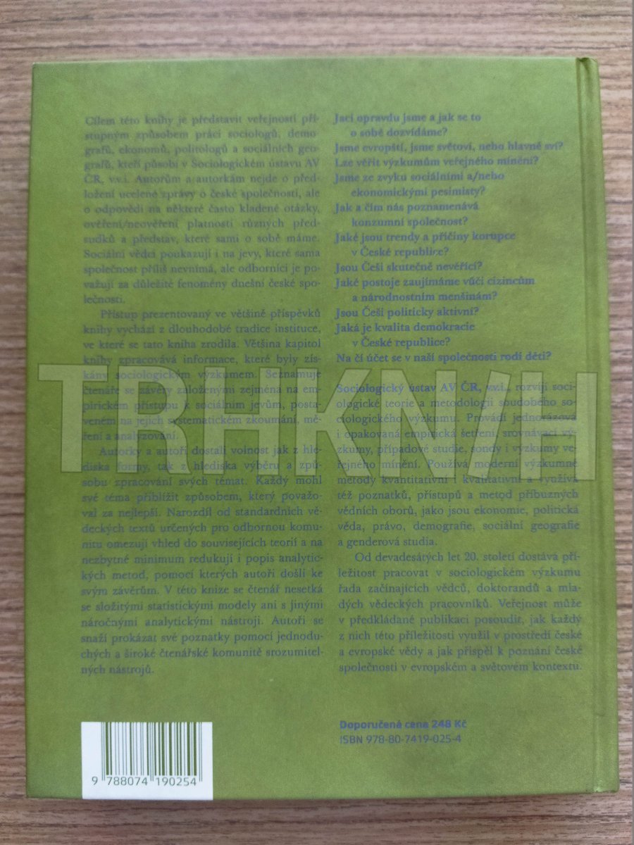 Cílem této knihy je představit veřejnosti přístupným způsobem práci sociologů, demografů, ekonomů, politologů a sociálních geografů, kteří působí v Sociologickém ústavu AV ČR, v.v.i. Autorům a autorkám nejde o předložení ucelené zprávy o české společnosti, ale o odpovědi na některé často kladené otázky, ověření/neověření platnosti různých předsudků a představ, které sami o sobě máme. Sociální vědci poukazují i na jevy, které sama společnost příliš nevnímá, ale odborníci je považují za důležité fenomény dnešní české společnosti.