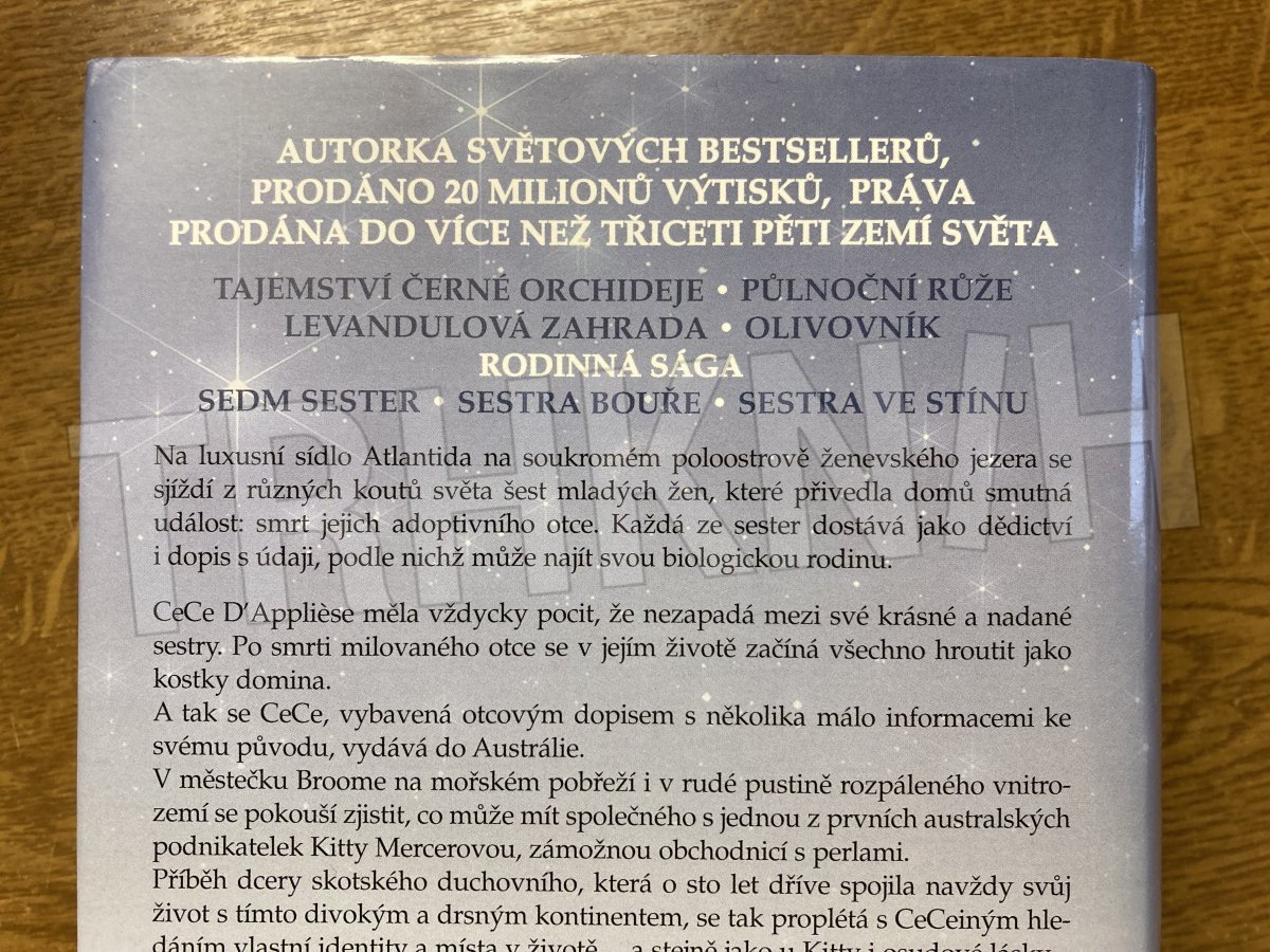 Po smrti adoptivního otce obdrží CeCe dopis a s ním černobílou fotografii, která jí má pomoci při pátrání po jejích předcích. Dívka chvíli váhá, přesto se ale rozhodne vyhledat své příbuzné. Během pátrání se stále více dozvídá o pohnutém osudu Kitty, která před sto lety jako mladá dívka odjela z Anglie do Austrálie, zde se provdala a pro svého syna dokázala znovu vzkřísit uvadající perlové impérium. Kittyin pohnutý osud je spjatý i s CeCe, která musí zjistit, co má s Kitty společné. Podaří se CeCe najít její rodinu a dokáže si v Austrálii vybudovat život, po kterém touží?