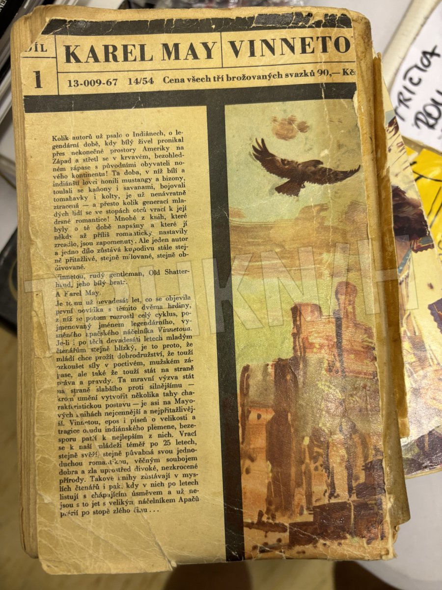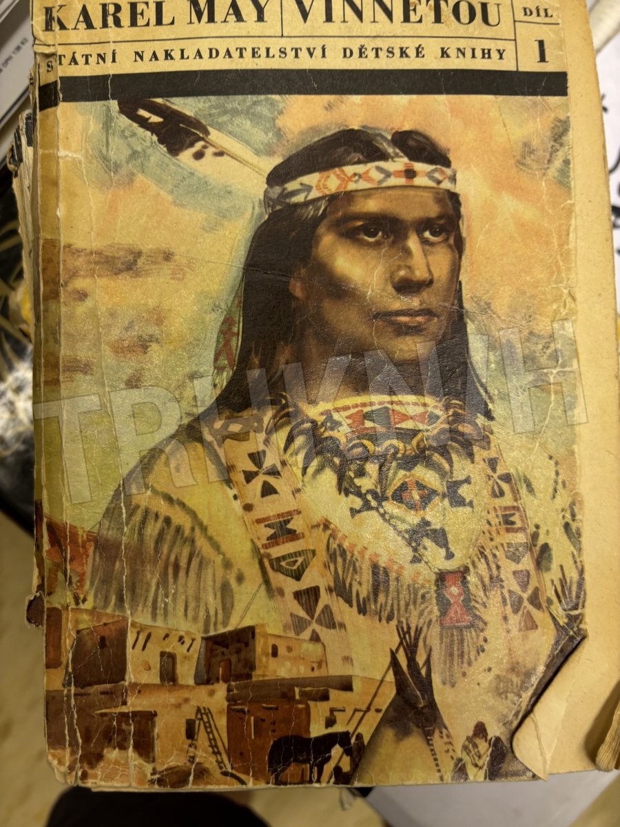 stav: používaná,velmi opotřebená, měkké kartonkové desky zohýbany,místy více ohmatáno, poskvrněno, ale je to stále Vinnetou, texty kompletní, ilustrace Z.Burián