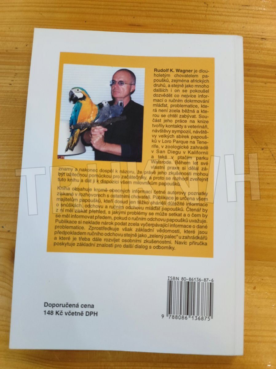 Autor, dlouholetý chovatel papoušků, se dělí o své zkušenosti a poznatky, které mohou být užitečnou pomůckou pro chovatele-začátečníky. Publikace je určena všem majitelům papoušků, kteří dosud těžko sháněli důležité informace o snůškách, odchovu a ručním odchovu mláďat.