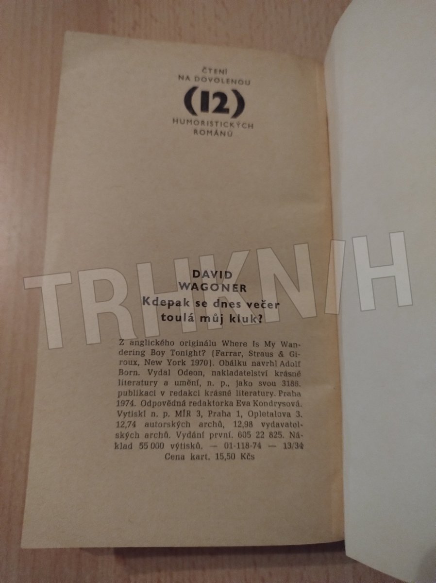 1974 Stav: Velmi dobrý, Ohnuté rohy, Vazba. Vazba: Brožovaná
