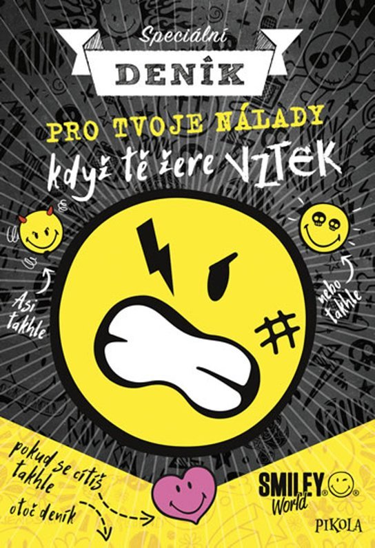 Oboustranný deníček se smajlíky – jedinečná příležitost, jak vyjádřit svoje emoce! Ať už máš radost nebo vztek, přepadl tě nával štěstí nebo smutku, neboj se a vyjádři je v téhle knížce. Stačí ji jen otočit podle nálady. Na 144 stránkách můžeš čmárat, stříhat, trhat, psát, a přitom dát průchod svému momentálnímu rozpoložení.