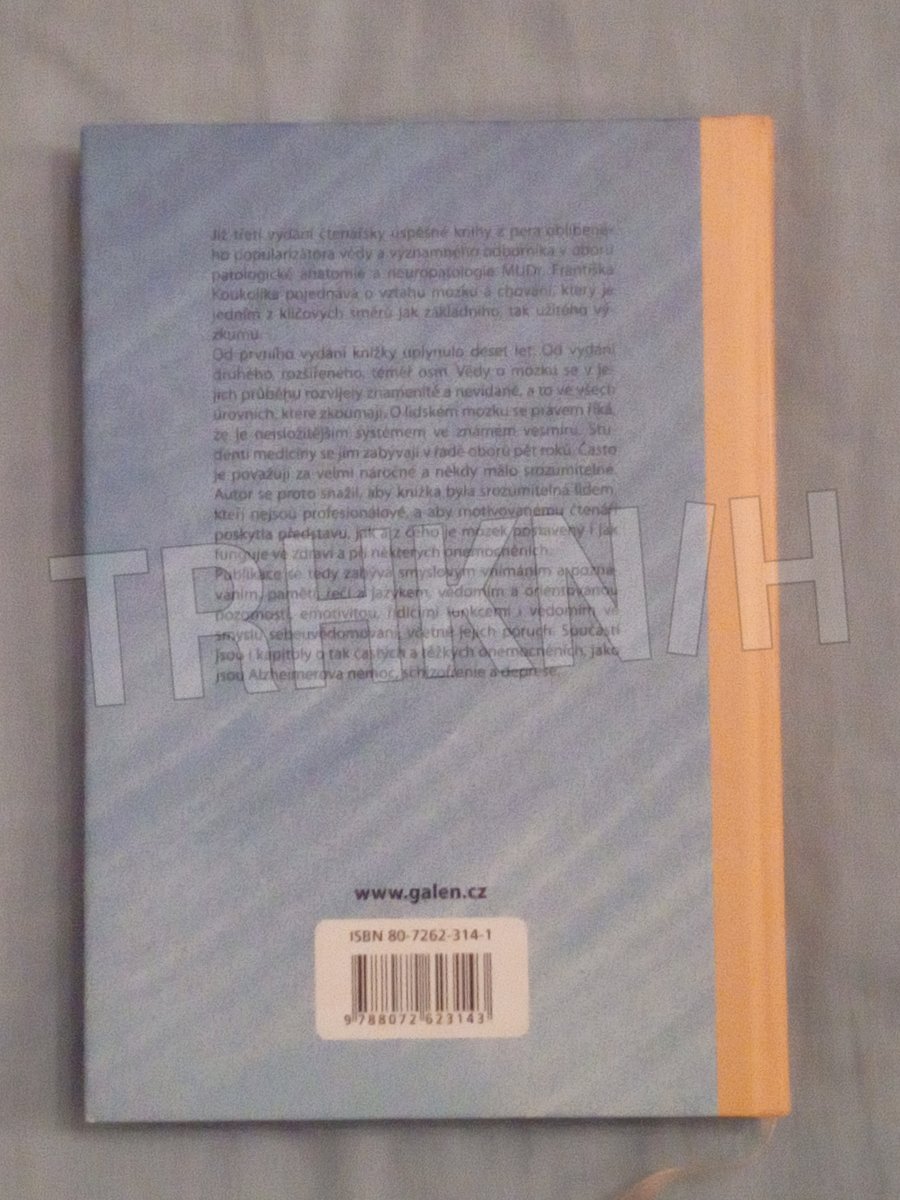 Již třetí vydání čtenářsky úspěšné knihy z pera oblíbeného popularizátora vědy a významného odborníka v oboru patologické anatomie a neuropatologie MUDr. Františka Koukolíka pojednává o vztahu mozku a chování, který je jedním z klíčových směrů jak základního, tak užitého výzkumu. Publikace se zabývá smyslovým vnímáním a poznáváním, pamětí, řečí a jazykem, vědomím a orientovanou pozorností, emotivitou, řídicími funkcemi i vědomím ve smyslu sebeuvědomování, včetně jejich poruch. Součástí jsou i kapitoly o tak častých a těžkých onemocněních, jako jsou Alzheimerova nemoc, schizofrenie a deprese.