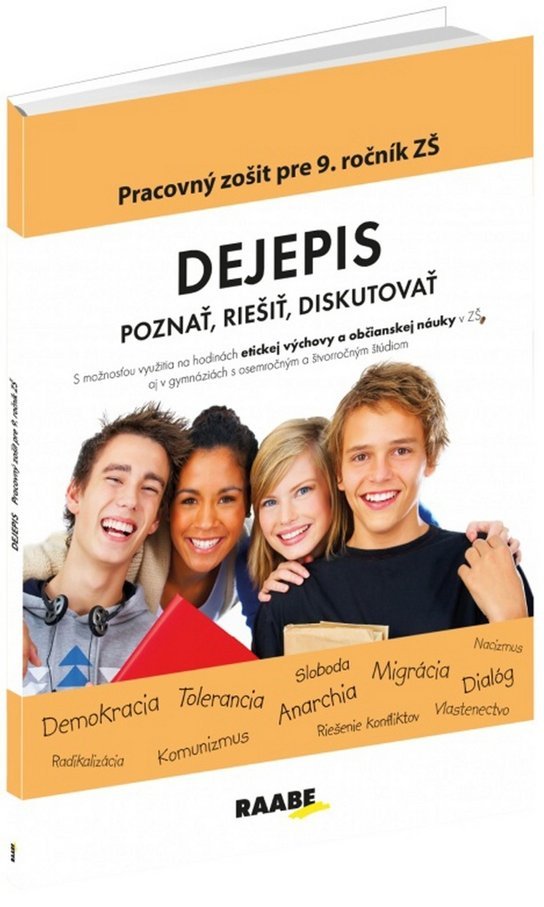 JEDINÝ SVOJHO DRUHU NA TRHU! Pracovný zošit pre 9. ročník základnej školy. Prináša témy na diskusiu a námety na aktivity pre žiakov na hodinách dejepisu, ale aj etickej východy a občianskej náuky v základných školách aj na gymnáziách s osemročným a štvorročným štúdiom. Pracovný zošit pre 9. ročník ZŠ vznikol ako reakcia na zmenu rámcového učebného plánu pre ZŠ, kedy má byť od 1. septembra 2017 pridaná 1 hodina dejepisu v 9. ročníku v ZŠ, ktorá má byť zameraná na diskusiu (učiteľ - žiaci) najmä na témy: Demokracia, Tolerancia, Vlastenectvo, Sloboda, Anarchia, Dialóg, Riešenie konfliktov, Nacizmus, Komunizmus, Migrácia, Radikalizácia ...