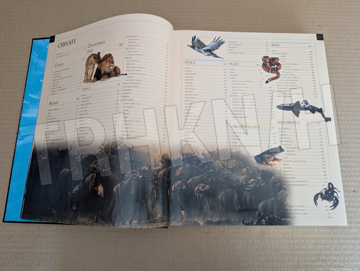 Unikátní encyklopedie Podrobný průvodce světem živočichů od mohutných savců po nejdrobnější bezobratlé Na knize, kterou vydalo nakladatelství Dorling Kindersley a která znamená převrat ve vydávání encyklopedické literatury, pracoval několik let početný tým biologů, redaktorů a fotografů. Výsledkem jejich snažení je 624 stran odborného, přitom však i laikům přístupného textu, map, ilustrací a především nádherných barevných fotografií, které nám dovolují nahlédnout do tajuplného světa zvířat. Je neuvěřitelné, že pro vydání v češtině text přeložil pouze jeden překladatel RNDr. Jiří Šmaha. Na překladu pracoval téměř rok a samozřejmě průběžně konzultoval s nejrůznějšími odborníky. Velkou oporou mu byla odborná redaktorka RNDr. Jana Horáčková, která rovněž sestavila rejstřík českých jmen i rejstřík vědeckých jmen