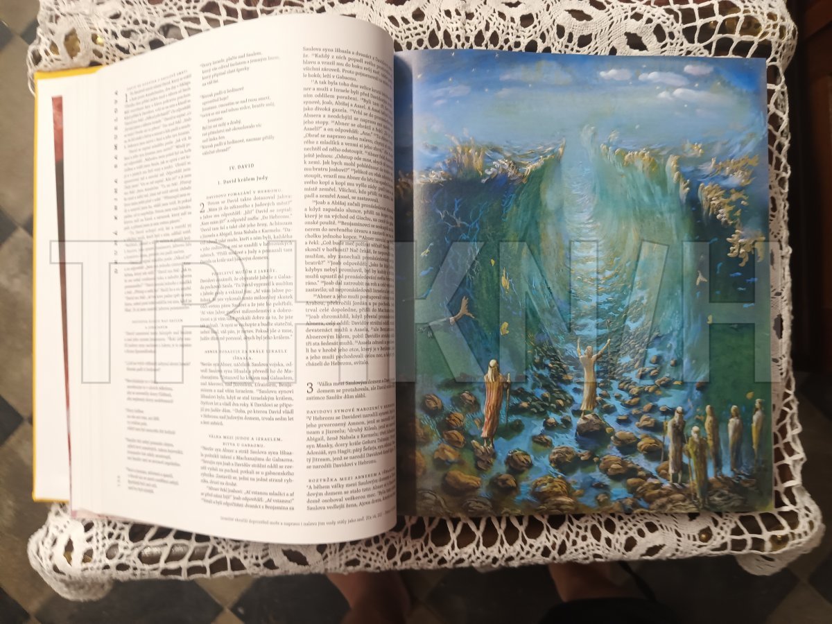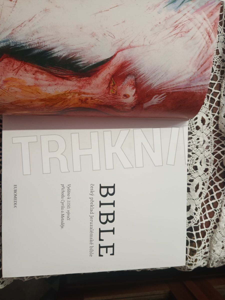 Unikátní projekt velkoformátové ilustrované bible, která vychází u příležitosti výročí 1150 let od příchodu sv. Cyrila a Metoděje. Skvěle graficky zpracovaná publikace obsahuje 110 celostránkových ilustrací od 11 českých a slovenských malířů a grafiků, které doprovázejí text moderního biblického překladu, tzv. Jeruzalémské bible. Ilustrace představují různé umělecké pohledy a přístupy a osobité uchopení biblických témat, jímž umocňují text posvátné knihy. Bibli ilustrovali: Daniel Balabán, Stano Dusík, Jan Jemelka, Jan Knap, M. F. Koupil, Igor Piačka, Peter Pollág, Jana Kiselová-Siteková, Peter Uchnár, Jaroslav Šerých, Josef Žáček.