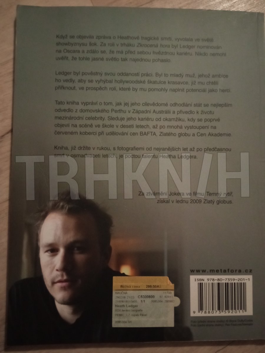 Životní příběh talentovaného filmového herce… Když se objevila zpráva o Heathově tragické smrti, vyvolala ve světě showbyznysu šok. Za roli v trháku Zkrocená hora byl Ledger nominován na Oscara a zdálo se, že má před sebou hvězdou kariéru. Nikdo nemohl uvěřit, že tohle jasné světlo tak najednou pohaslo. Ledger byl pověstný svou oddaností práci. Byl to mladý muž, jehož ambice ho vedly, aby se vyhýbal hollywoodské škatulce krasavce, již mu chtěli přiřknout, ve prospěch rolí, které by mu pomohly naplnit potenciál jako herci. Tato kniha vypráví o tom, jak jej jeho cílevědomé odhodlání stát se nejlepším odvedlo z domovského Perthu v Západní Austrálii a přivedlo k životu mezinárodní celebrity. Sleduje jeho kariéru od okamžiku, kdy se poprvé objevil na scéně ve škole v deseti letech, až po mnohá vystoupení na červeném koberci při udělování cen BAFTA, Zlatého globu a Cen Akademie. Kniha, s fotografiemi od nejranějších let až po předčasnou smrt v osmadvaceti letech v lednu 2008, je poctou talentu Heatha Ledgera. Za ztvárnění Jokera ve filmu Temný rytíř získal v lednu 2009 Zlatý Globus.