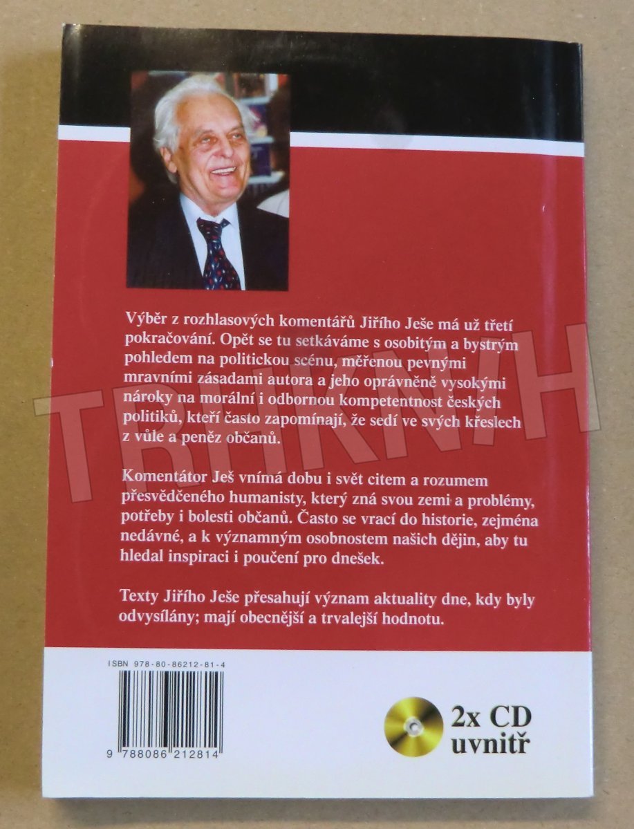 Výběr z rozhlasových komentářů Jiřího Ješe má už třetí pokračování. Opět se tu setkáváme s osobitým a bystrým pohledem na politickou scénu, měřenou pevnými mravními zásadami autora a jeho oprávněně vysokými nároky na morální i odbornou kompetentnost českých politiků, kteří často zapomínají, že sedí ve svých křeslech z vůle a peněz občanů. Komentátor Ješ vnímá dobu i svět citem a rozumem přesvědčeného humanisty, který zná svou zemi a problémy, potřeby i bolesti občanů. Často se vrací do historie, zejména nedávné, a k významným osobnostem našich dějin, aby tu hledal inspiraci i poučení pro dnešek. Texty Jiřího Ješe přesahují význam aktuality dne, kdy byly odvysílány; mají obecnější a trvalejší hodnotu. Nejsou pouhými komentáři, ale svým způsobem pomáhají utvářet a zlepšovat občanskou společnost.