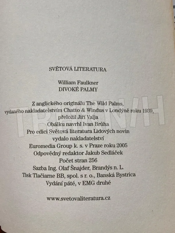 V Praze: Pro edici Světová literatura Lidových novin vydalo nakl. Euromedia Group, 2005. Vydání 5. Strany 253 s. Stav: velmi dobrý. Vazba: původní s přebalem 8°