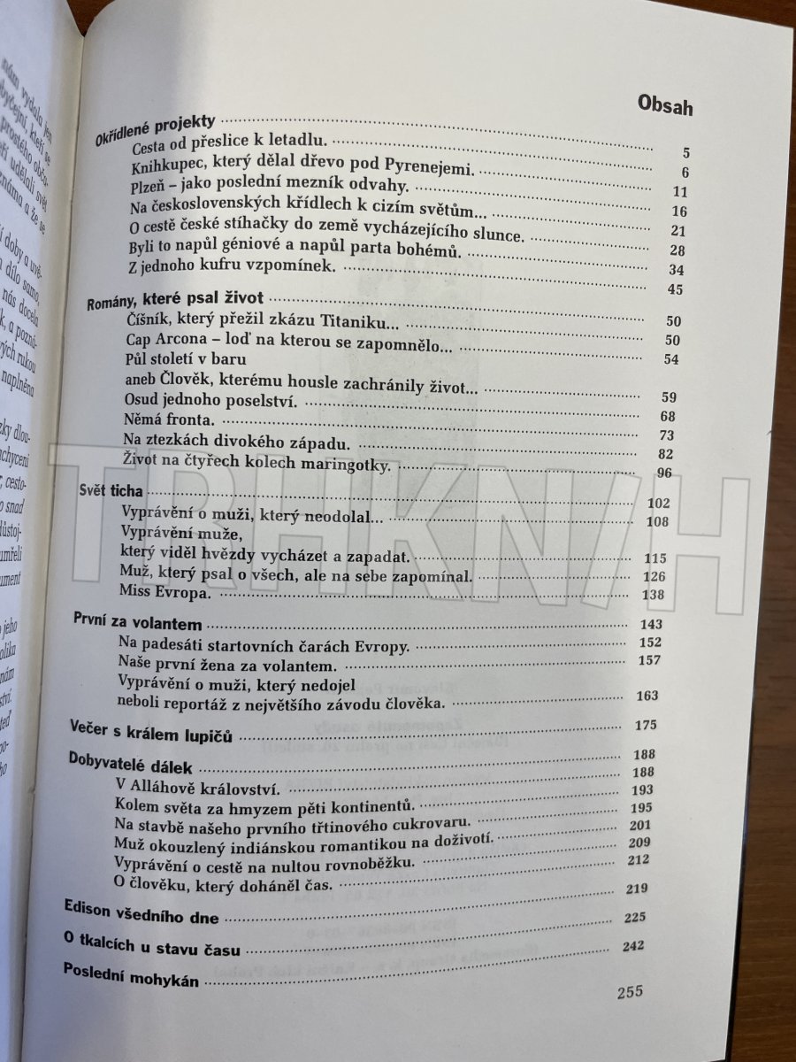 Mozaika příběhů lidí se zajímavými či tragickými osudy, zvláštními profesemi, zálibami a schopnostmi. Několik větších tematických okruhů - průkopníci české kinematografie, letectví, automobilismu atd. Dále lidé, kteří se stali svědky či účastníky mimořádných událostí (zkáza Titanicu, potopení Cap Arcony). Vynálezci, vědci, umělci, cestovatelé, ale i dobrodruzi a dokonce jeden známý zloděj a kasař.